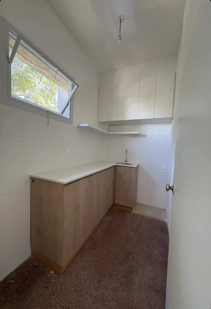 Cocina definida con placares bajo y sobre mesada