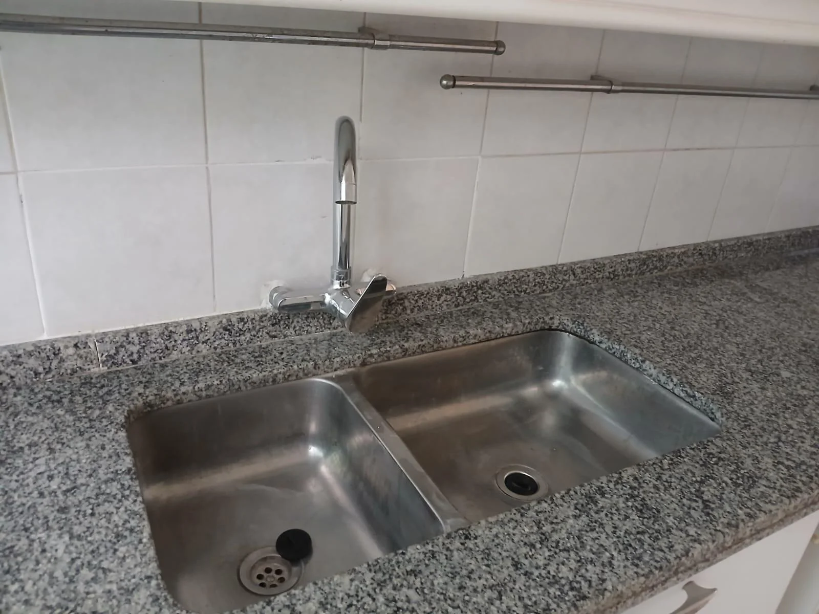 Cocina con bajo y alto mesada y conexion para lavadora.