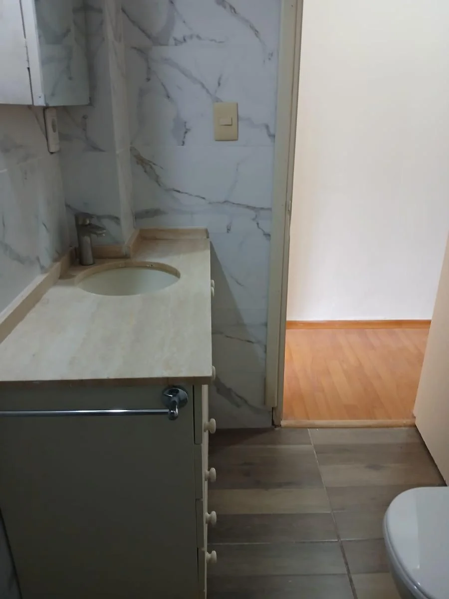 Cuenta con un living-comedor iluminado con vista a la calle , dos dormitorios amplios con pisos de parquet, uno de ellos con placar de pared a pared y baño completo.
