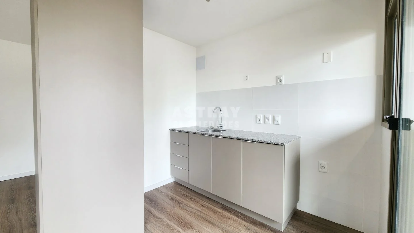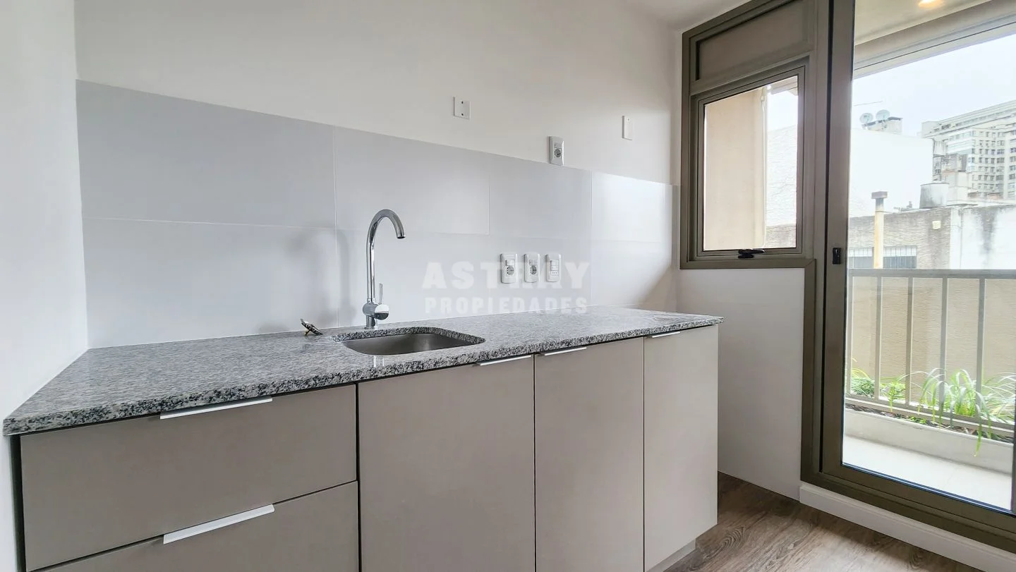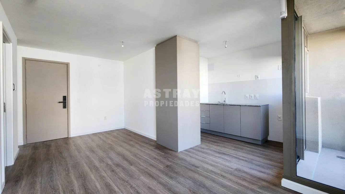 Living comedor amplio con cocina semi integrada, con previsión para aire acondicionado y acceso a balcón.
