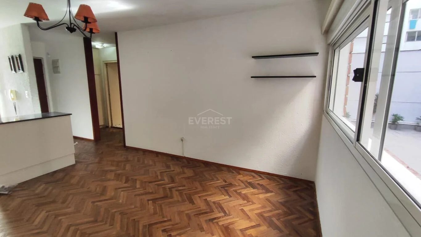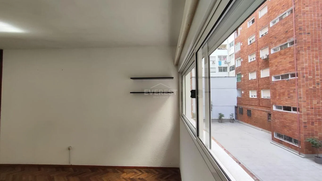 El apartamento se encuentra en el primer piso, es muy amplio e iluminado , cuenta con 41 metros mas 6 de patio propio.