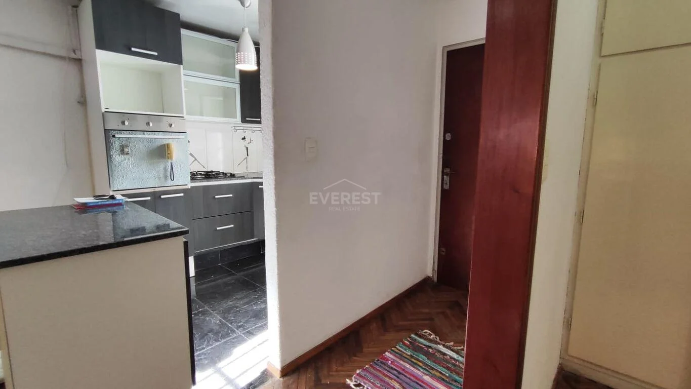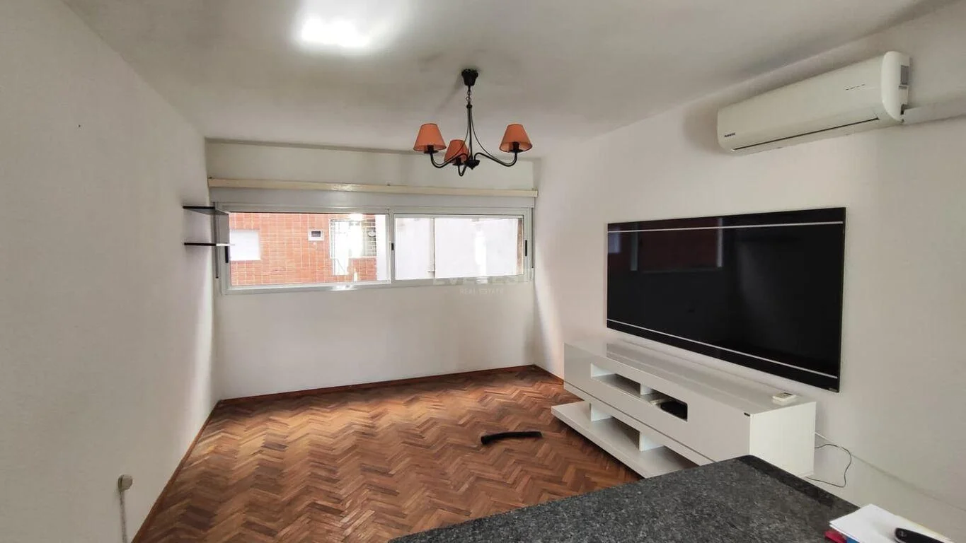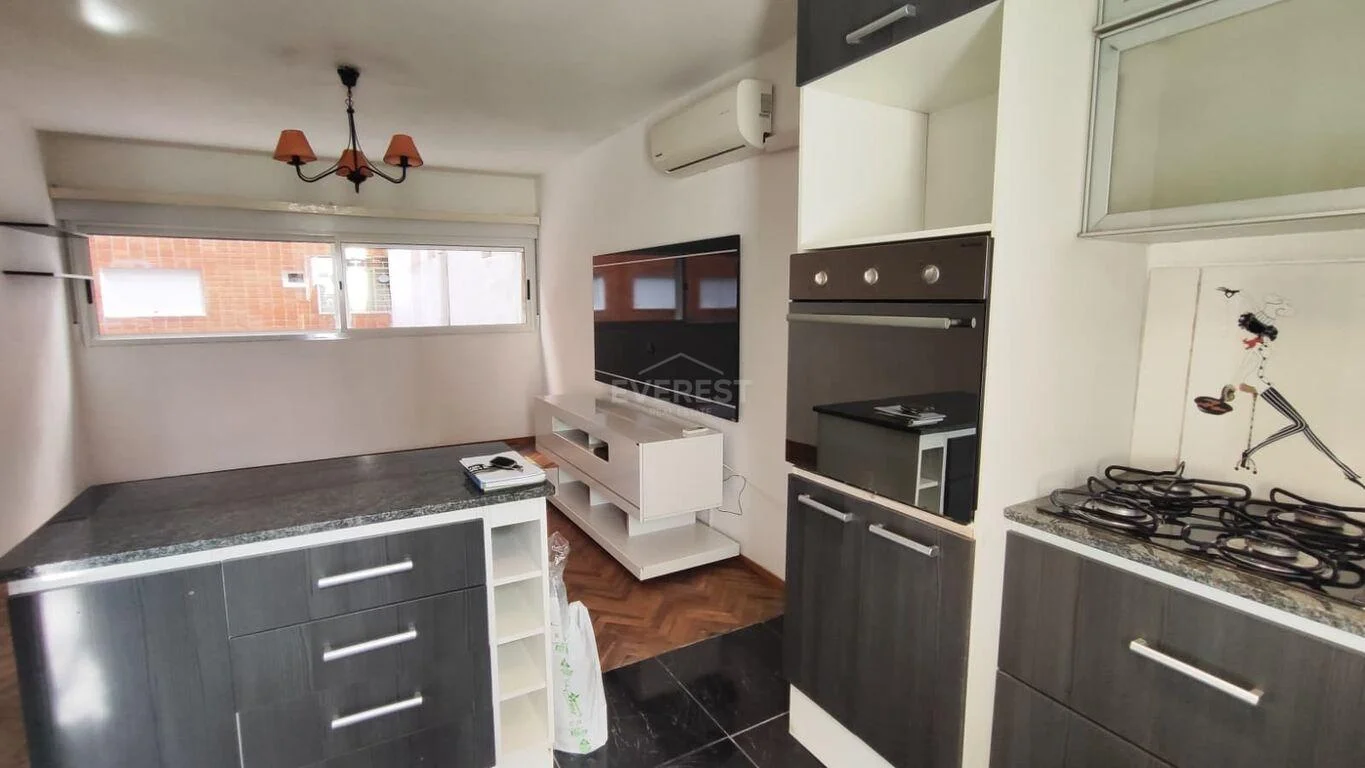 Ingresamos al living con aire acondicionado y ventana, cocina integrada muy comoda, con anafe y horno empotrado , por la cual se accede al soleado patio, dormitorio de gran dimension con placar y 1 baño completo.