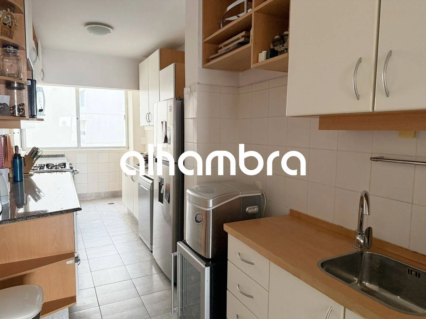 La planta es generosa y funcional: 118 m² interiores más 13 m² de terraza. Cuenta con tres dormitorios (dos al frente con salida a terraza), amplio living comedor también al frente, cocina actualizada, dos baños completos, uno de ellos en suite, baño y dormitorio de servicio (este último ideal como escritorio).