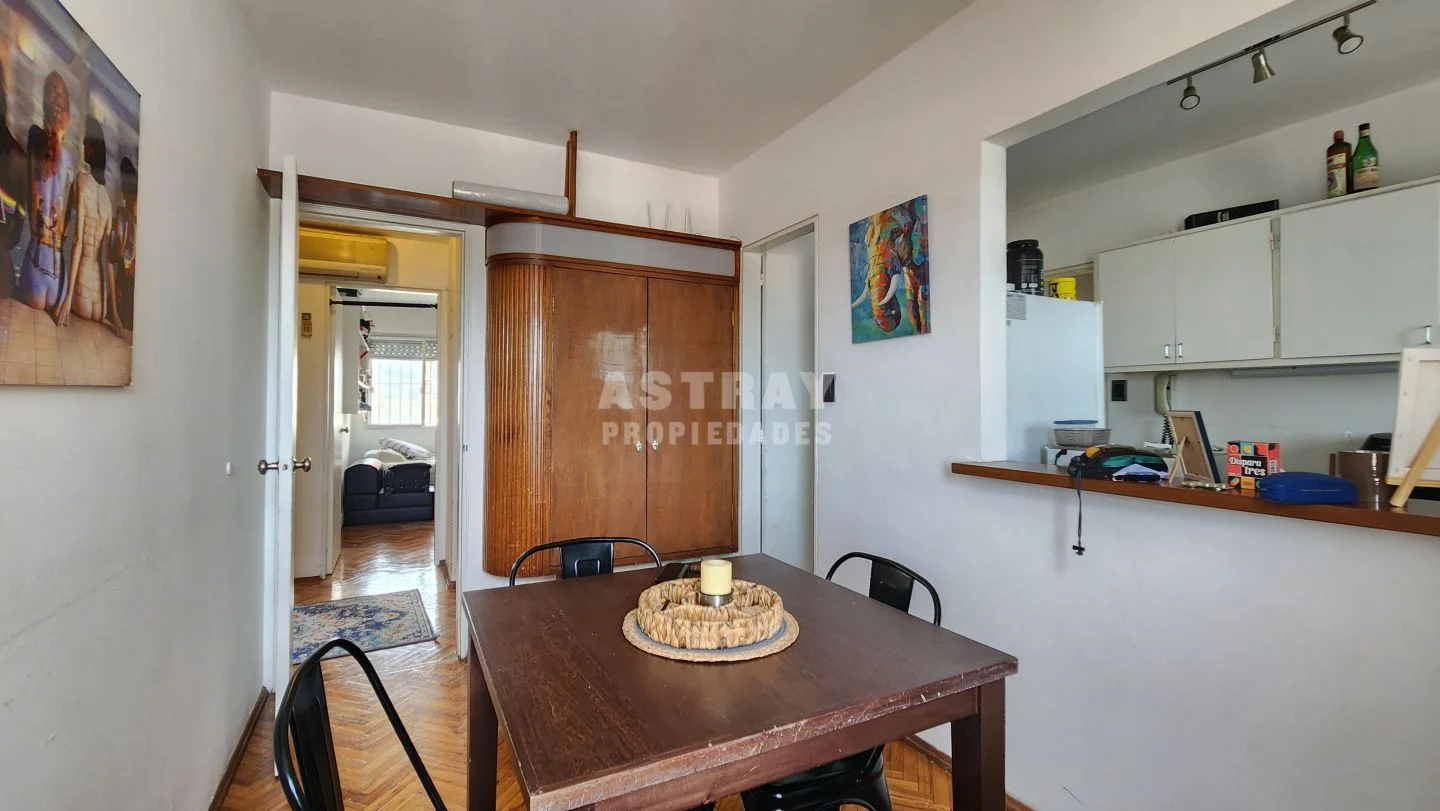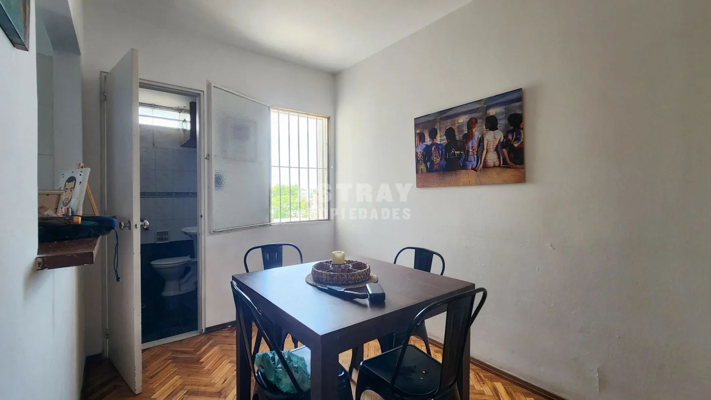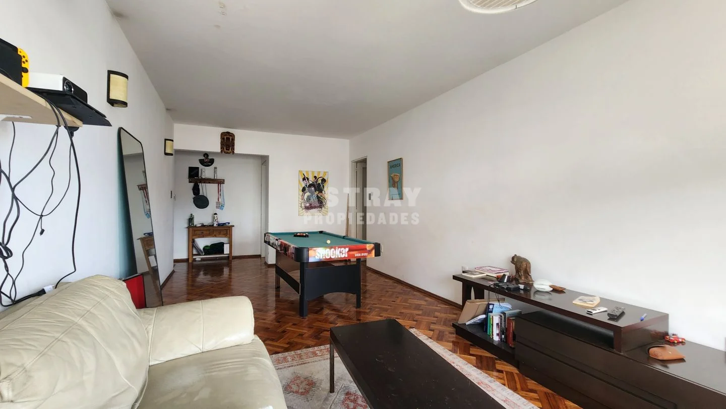 Living-comedor de buen tamaño, con pisos de parquet plastificados, doble ventana y cortina de enrollar.