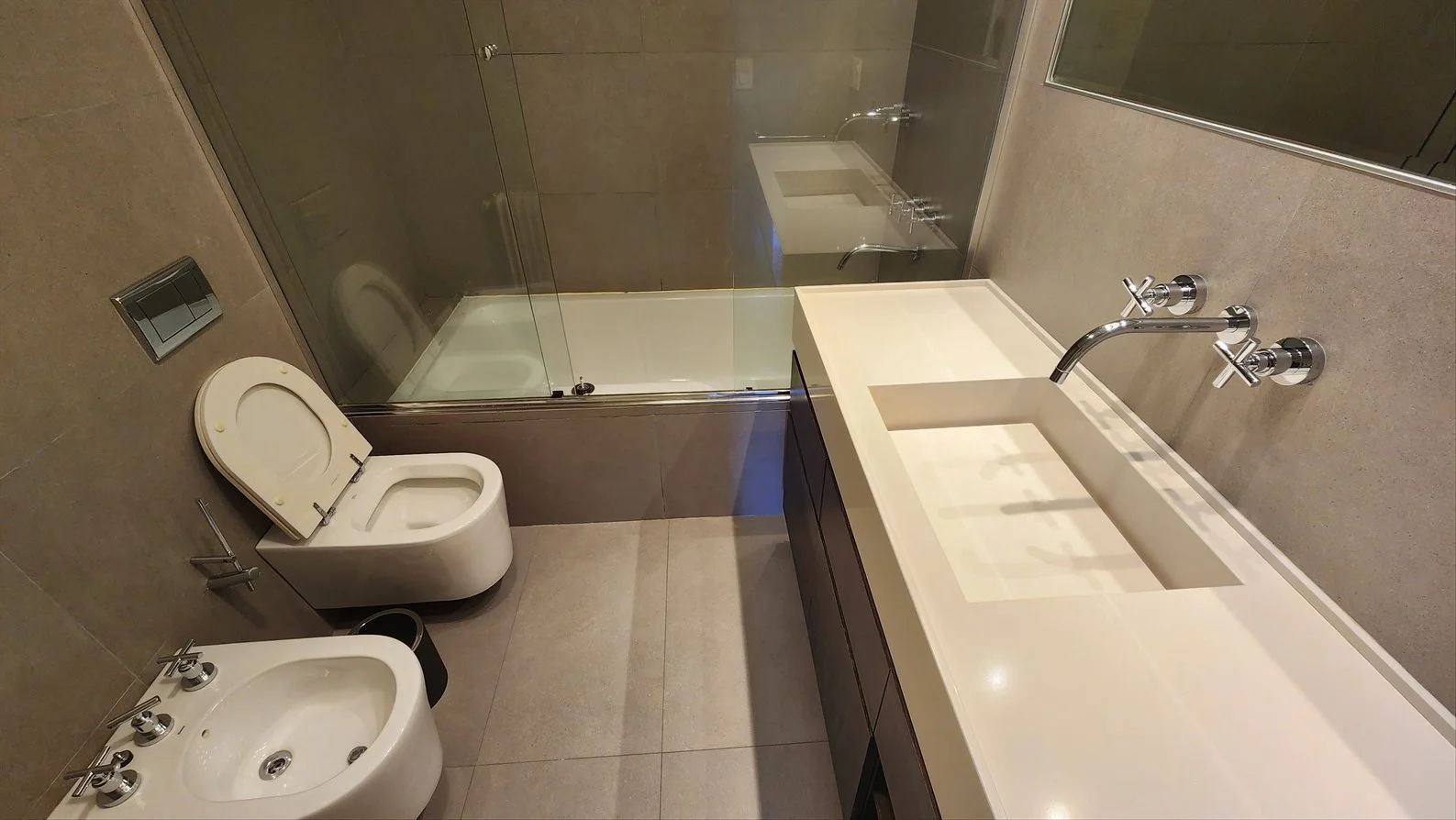 Calefacción central por losa radiante, el agua caliente por calefones eléctricos.