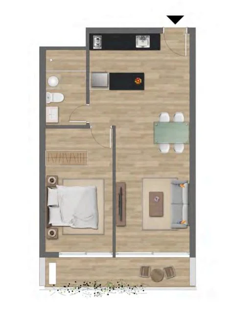 Amplio apartamento de 1 dormitorio con living comedor y dormitorio ubicada al frente, con acceso al balcón.. Esto garantiza luz natural y salida directa al exterior incluso si se genera una separación interna.