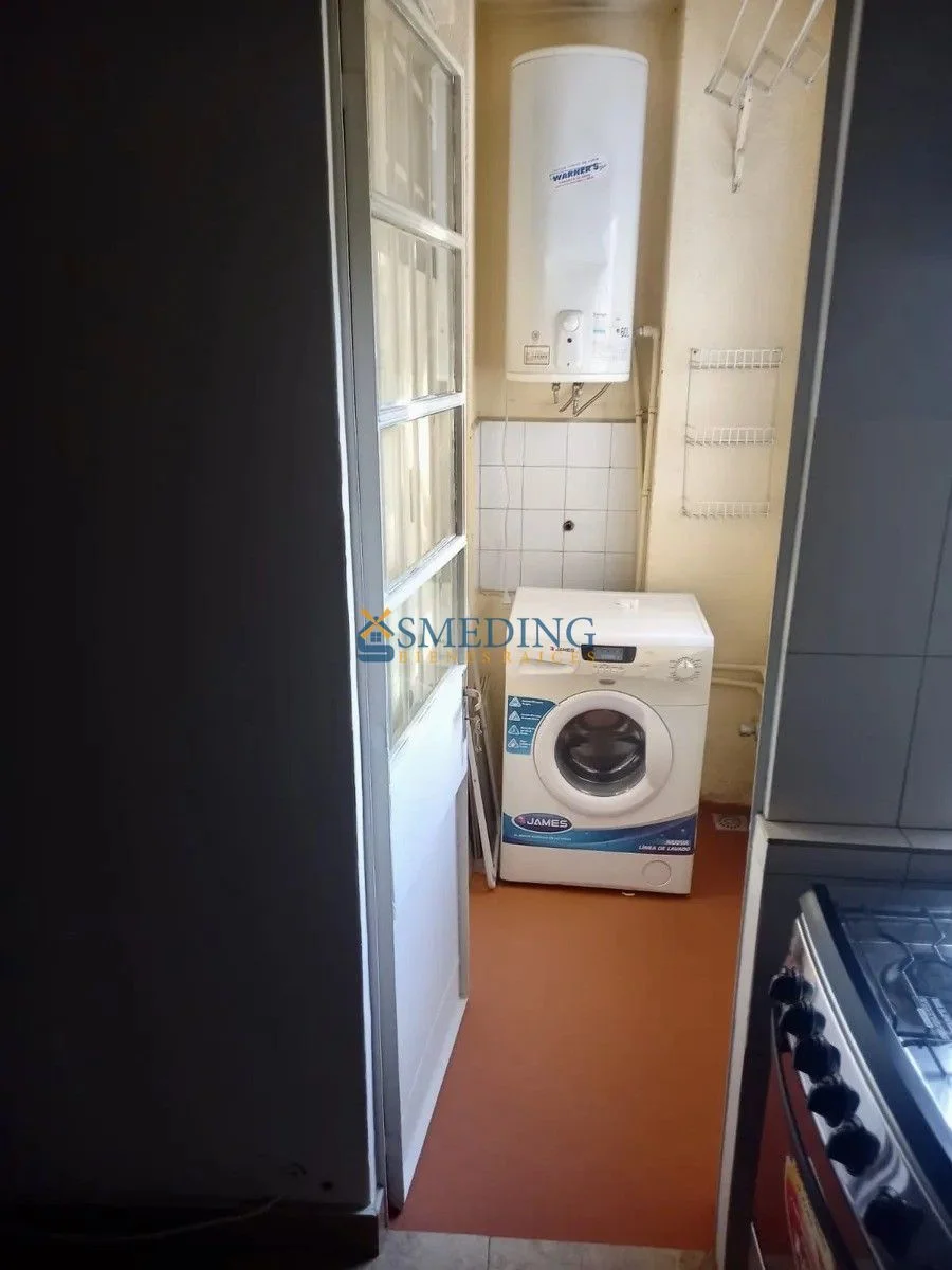 Living-comedor amplio, con piso de parquet y ventanales que abren a un balcón cerrado, permitiendo la entrada de luz natural durante todo el día. Equipado con aire acondicionado, juego de comedor y sofá en excelente estado. Cocina completamente equipada con heladera con freezer, horno y anafe, además de muebles aéreos y bajo mesada de madera y granito. Incluye un espacio de lavadero independiente con lavarropas y calefón.