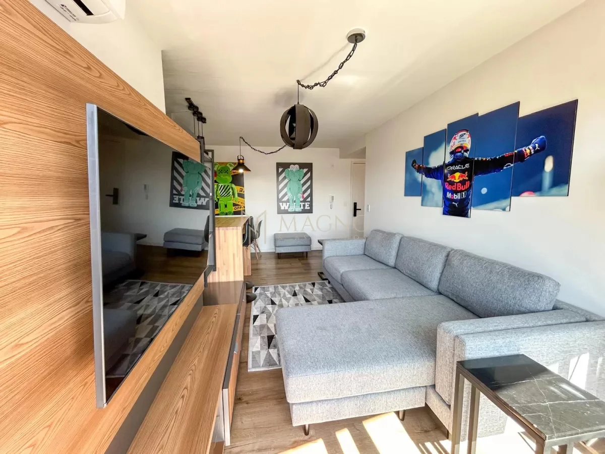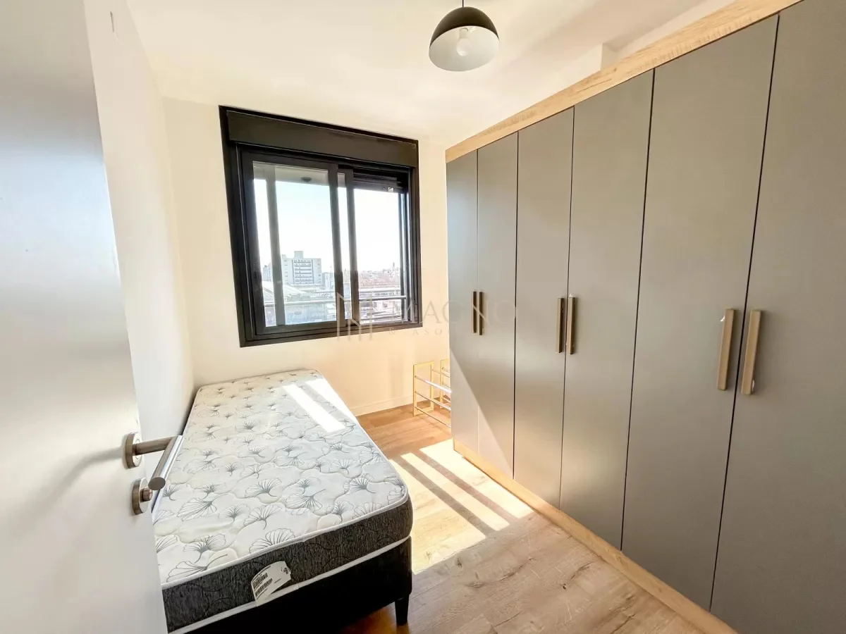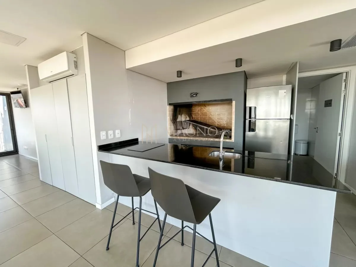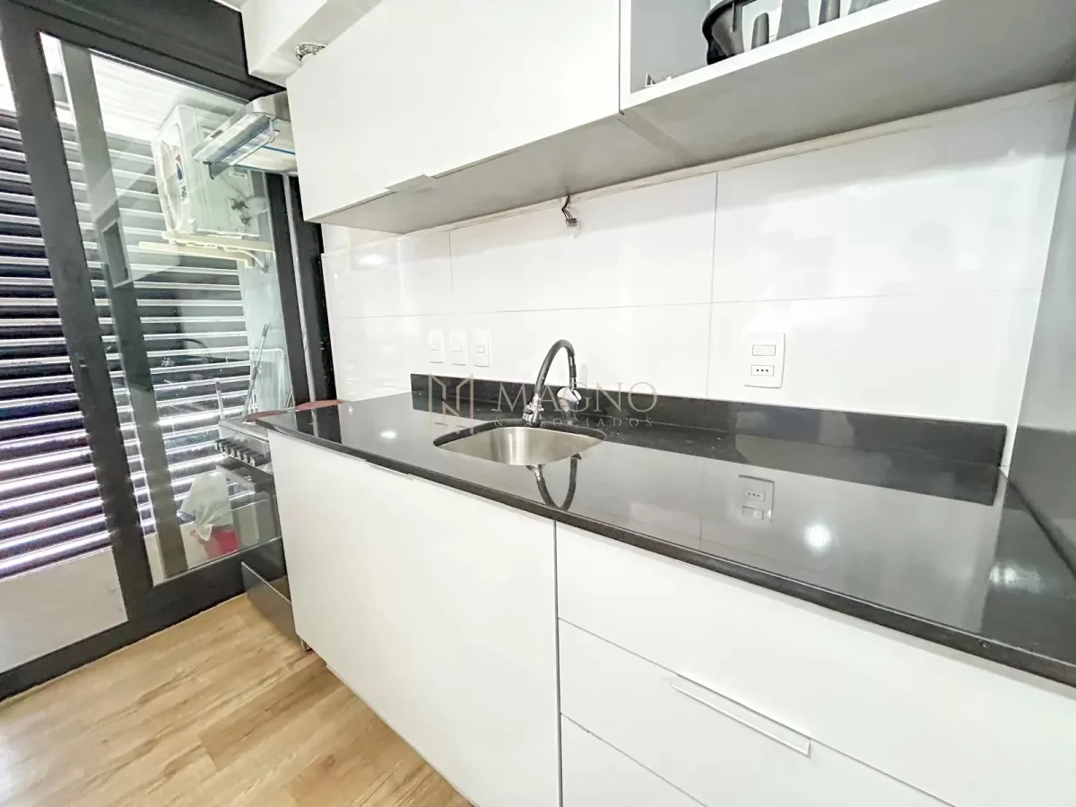 Apartamento totalmente equipado en el edificio Nostrum Central, ubicado sobre Paraguay y La Paz, en pleno Centro. Se encuentra en el piso 8 al frente, con orientación norte y acceso a balcón con vista panorámica.