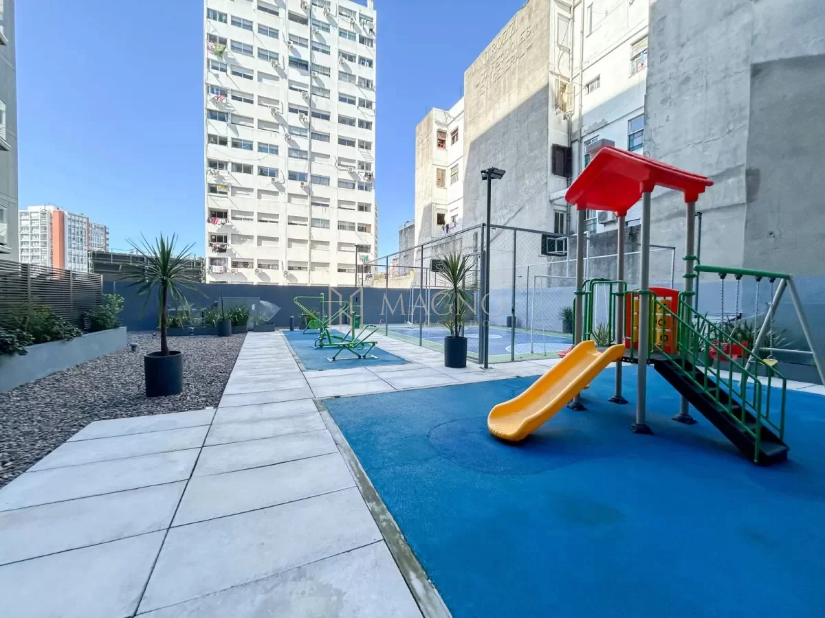 El edificio Nostrum Central cuenta con diferentes áreas comunes: barbacoas, espacio de coworking con vista panorámica, canchas de uso común y espacios verdes donde se permiten mascotas. Además, dispone de gimnasio, ascensor, circuito de cámaras de seguridad y juegos infantiles.