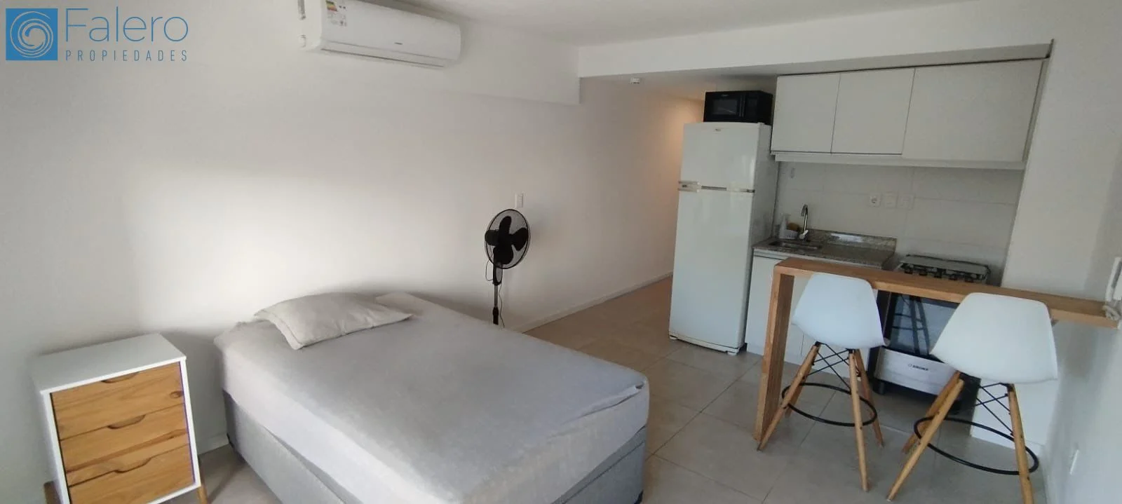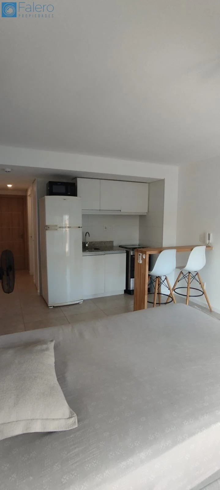 Monoambiente en alquiler de $ 22.000, ubicado en la intersección de la calle Buxareo y 26 de Marzo, en el corazón de Pocitos. Este amplio espacio de 33 m² cuenta con una distribución funcional ideal para quienes buscan confort y practicidad. Está equipado con sommier con cajonera, mesa de luz y un baño completo con calefón. La cocina integrada, diseñada con placares y una moderna barra con banquetas, incluye todos los electrodomésticos necesarios: microondas, heladera y anafe, así como ollas y sartenes sin uso, lo que asegura el equipamiento necesario para habitarlo. Además, el aire acondicionado garantiza un ambiente agradable durante todo el año.