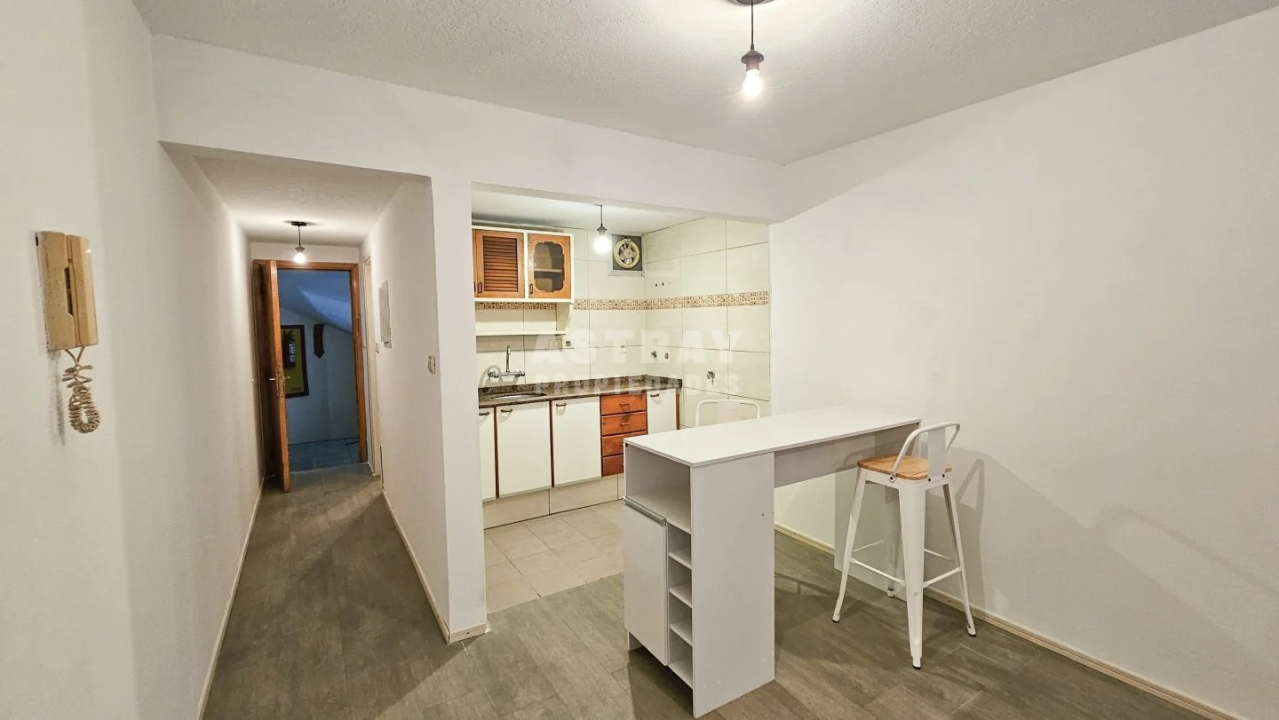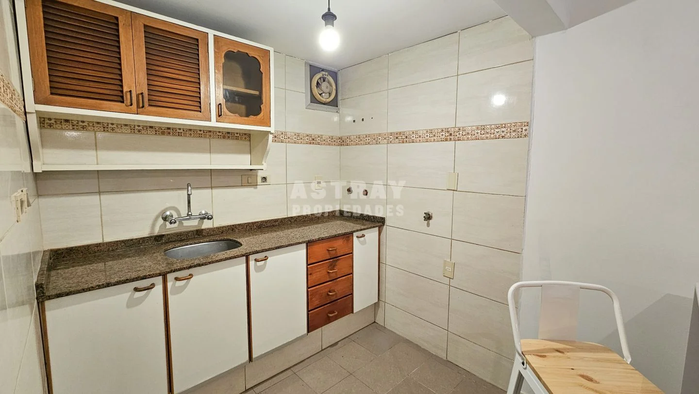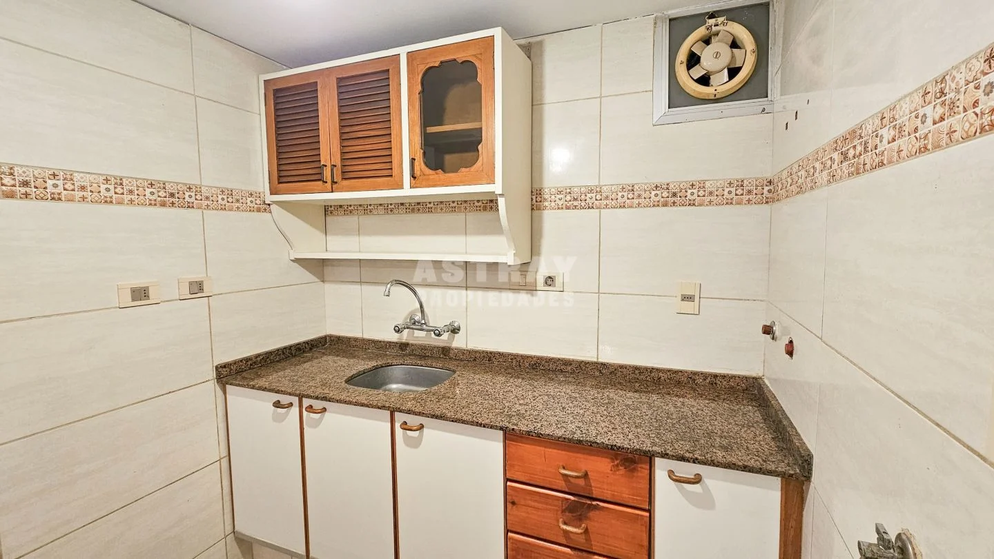 Kitchenette con placares bajo y sobre mesada, campana extractora, conexión para lavarropas y termofón.