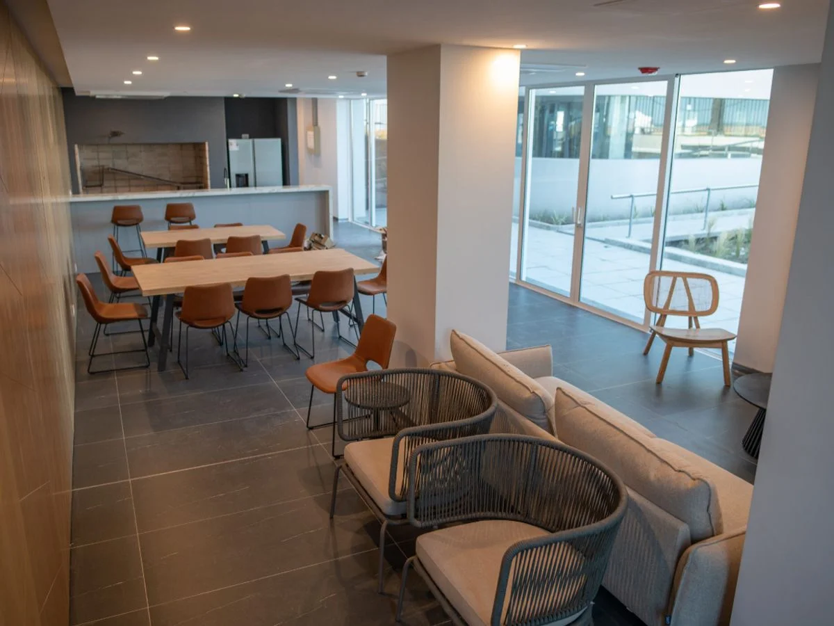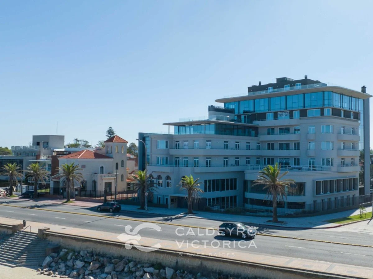 Amenities: piscina interior climatizada, sauna húmedo, sala de masajes, salón de belleza, business center con sala de reuniones, sala de eventos con vista a la rambla, barbacoas con parrillero, terraza solárium, gimnasio con equipamiento fitness, huerta, jardín patrimonial y servicio de mucama (opcional).