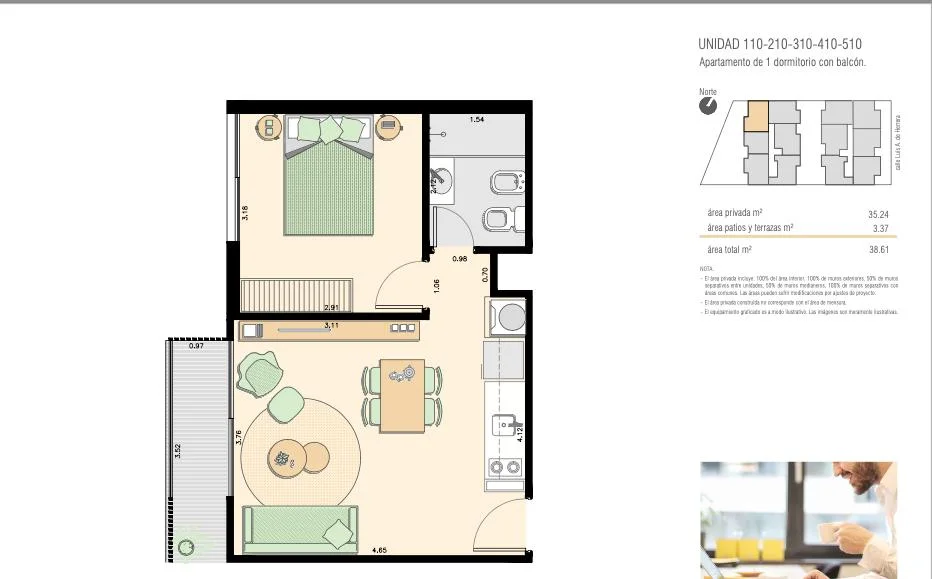 6 unidades disponibles de 1 dormitorio desde USD 124.000.