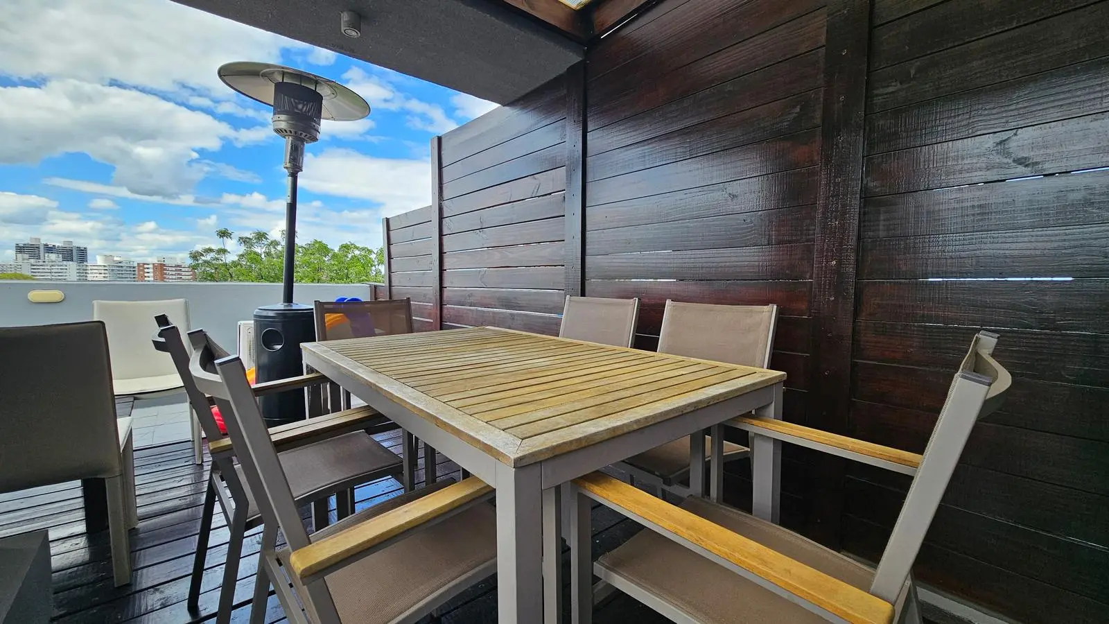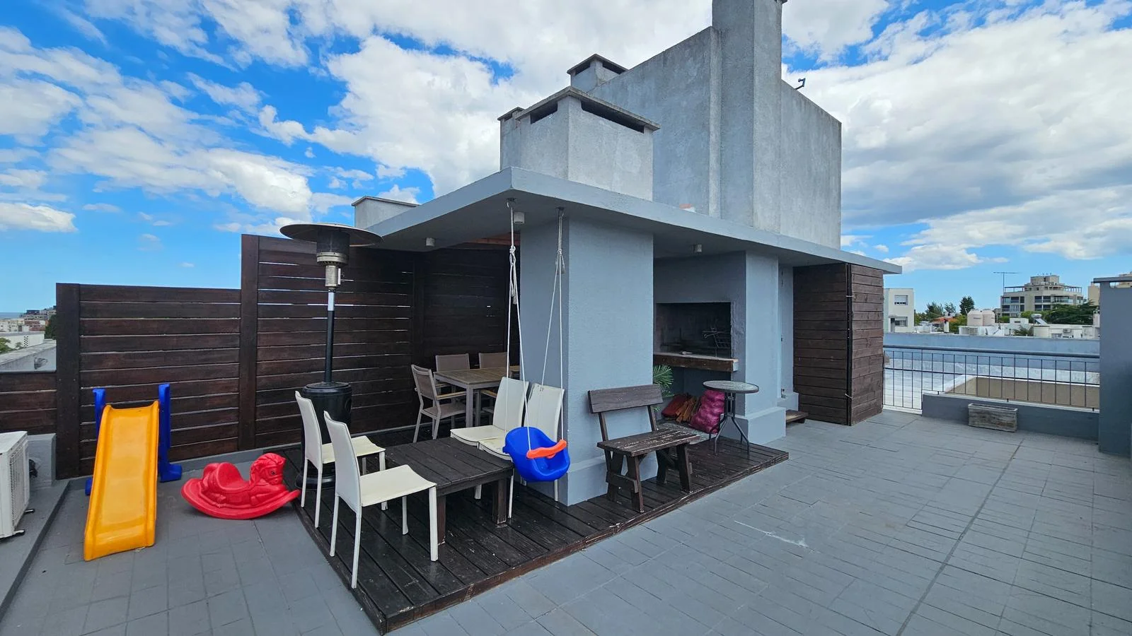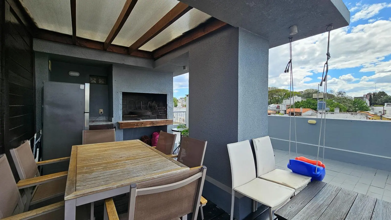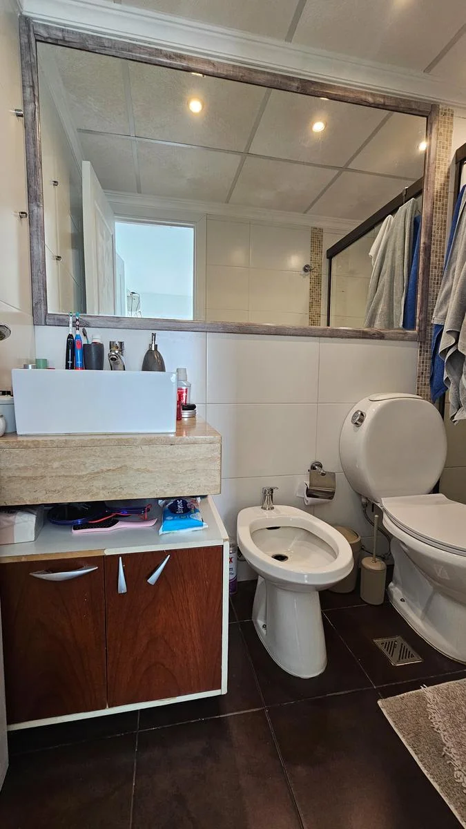 Impecable y cálido apto al frente, por ascensor. Posee living comedor con salida a terraza/balcón al frente, linda cocina con placares aéreos, bajo mesada, doble pileta de acero inoxidable y barra hacia el living. 2 dormitorios con placares, principal en suite, 2 baños completos. Aire acondicionado en todos los ambientes. Acceso a azotea amplia de uso exclusivo, donde podrás disfrutar de un espacio al aire libre con pasto sintético y un precioso deck en madera y policarbonato con parrillero y mesada con pileta. La unidad cuenta con box y garaje de uso exclusivo. Admite préstamo hipotecario