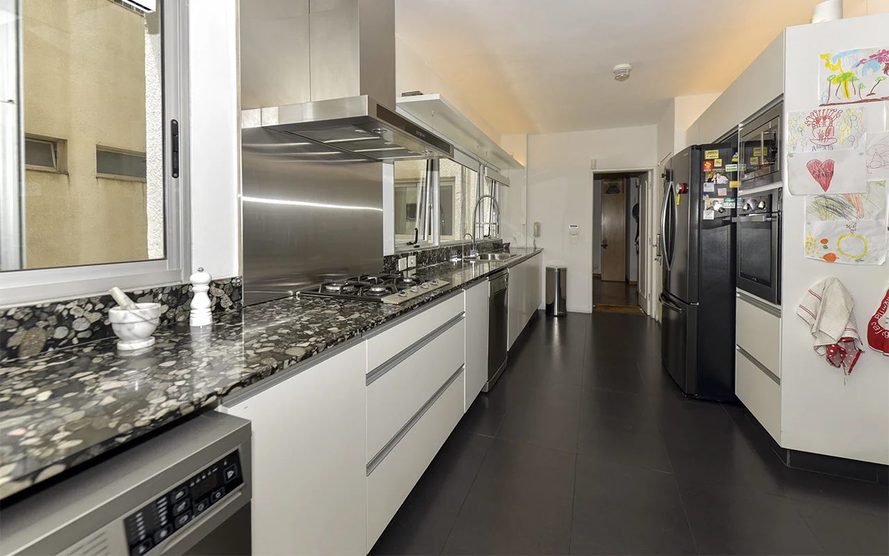 Dispone de estar amplio, cocina muy moderna y espaciosa, servicio completo, dos garajes, box amplio, suite grande con vestidor, terraza al frente, entrada de servicio, portería física 24 horas, rollers y persianas automatizados, ascensor de servicio, calefacción central, aires inverter en todos los ambientes,