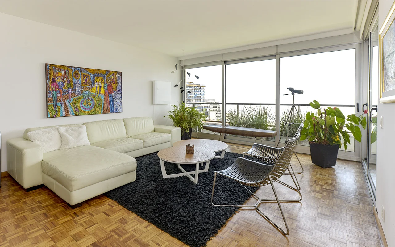 Descubra este apartamento en venta, ubicado en Pocitos. Una propiedad que redefine la vida moderna con sus amplios ventanales, diseño contemporáneo y luminosos espacios que ofrecen impresionantes vistas panorámicas al mar. Con 4 baños y 2 garajes, este apartamento de estilo moderno promete una experiencia de vida confortable y elegante. Este espacioso apartamento se distingue por sus ambientes generosos, realzados por exclusivos pisos de madera y grandes ventanales de piso a techo que inundan cada rincón de luz natural. Disfrute de una elegante sala de estar con comedor integrado, ideal para el entretenimiento o la relajación. Además, cuenta con un escritorio equipado con balcón y estanterías, perfecto para el trabajo remoto. Las características clave de esta propiedad incluyen su luminosidad, amplios ventanales, pisos de madera y vistas espectaculares a la ciudad y al mar. El diseño moderno y la distribución inteligente de los espacios, junto con detalles como el sistema de sonido y los dos garajes, garantizan una comodidad superior en un entorno exclusivo.