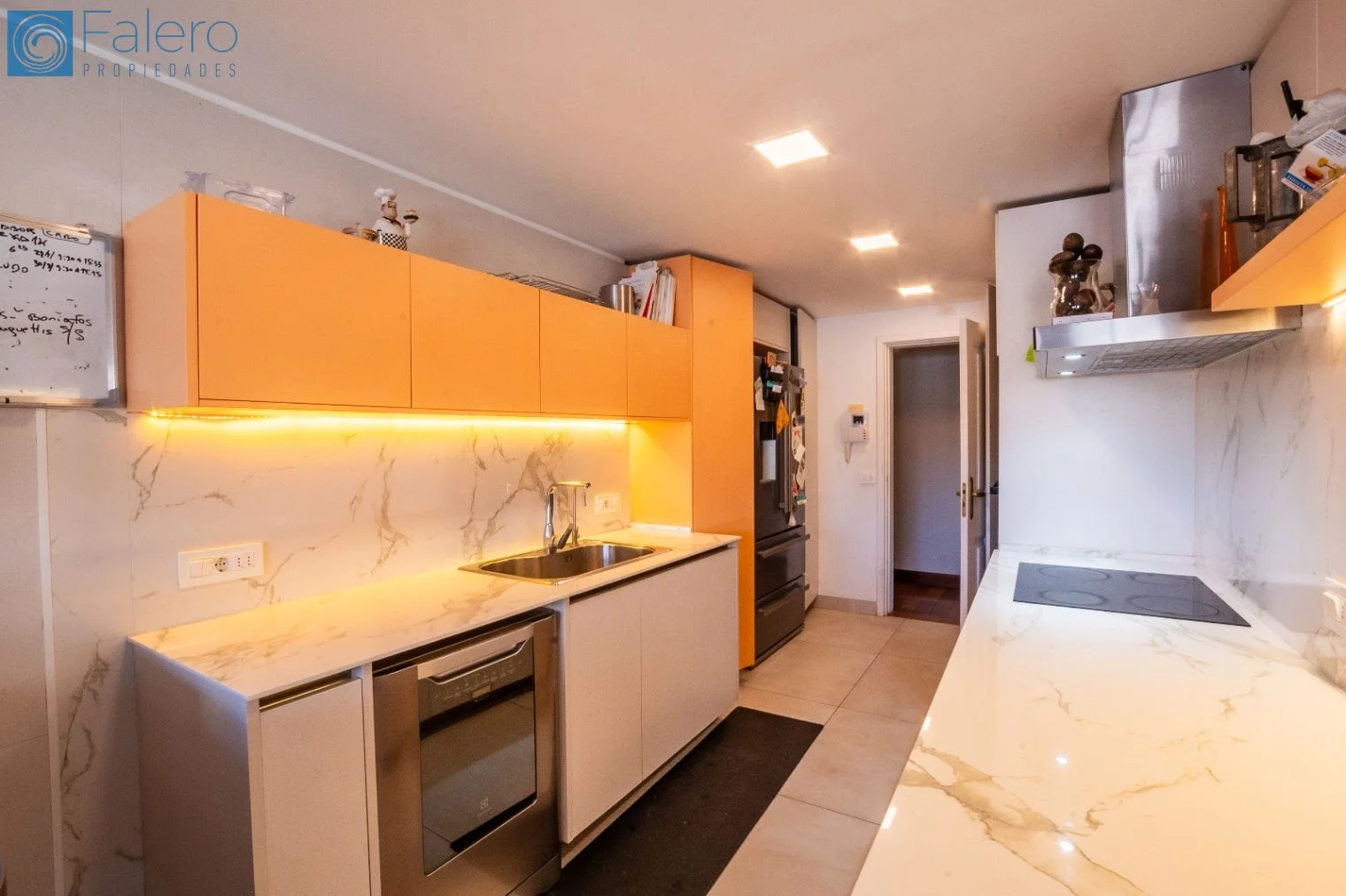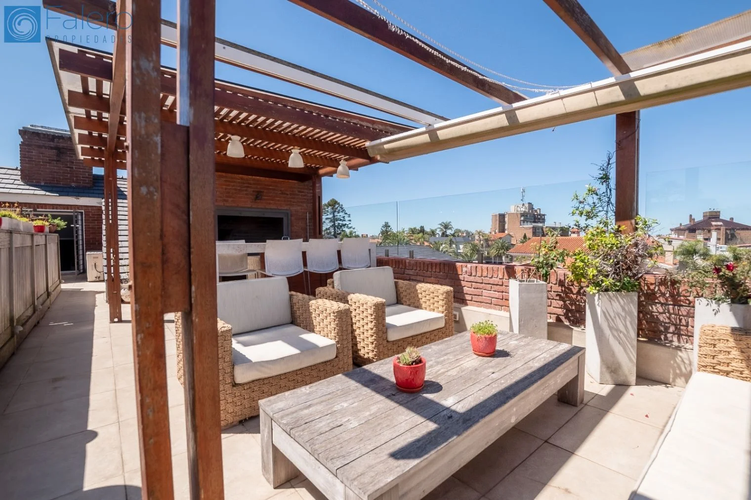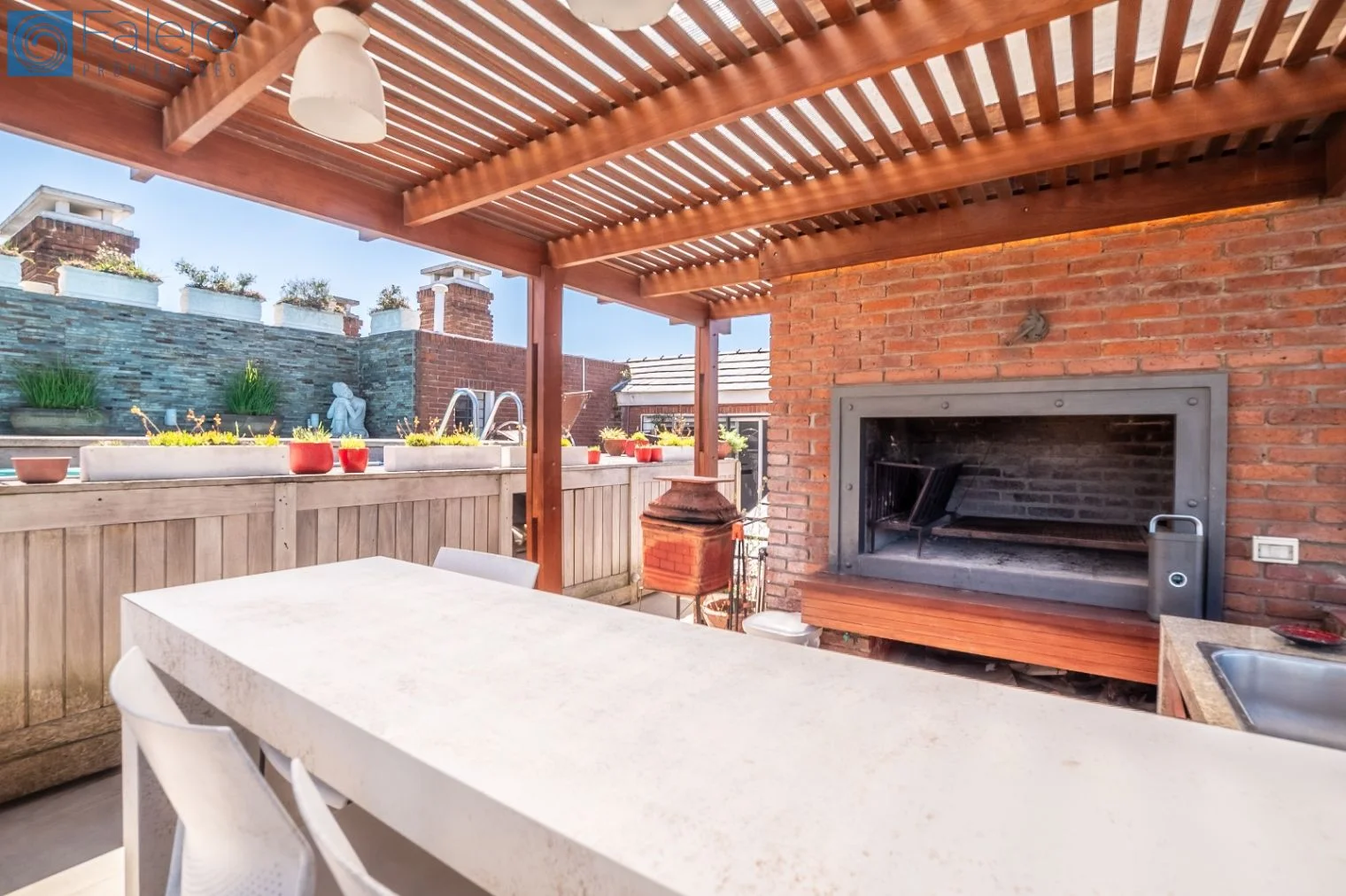 Este dúplex cuenta con 6 ambientes, que incluyen 4 dormitorios y 4 baños, además de una cocina completamente renovada. La amplia terraza con parrillero propio y la azotea perfilada con piscina climatizada de uso exclusivo brindan un espacio ideal para el entretenimiento y el relax. Adicionalmente, dispone de un playroom o escritorio propio, perfectos para quienes buscan un espacio de trabajo o recreación en casa. La propiedad también incluye un garaje cubierto para 2 autos y cuenta con características de seguridad como cámaras CCTV, alarma y portón automático.