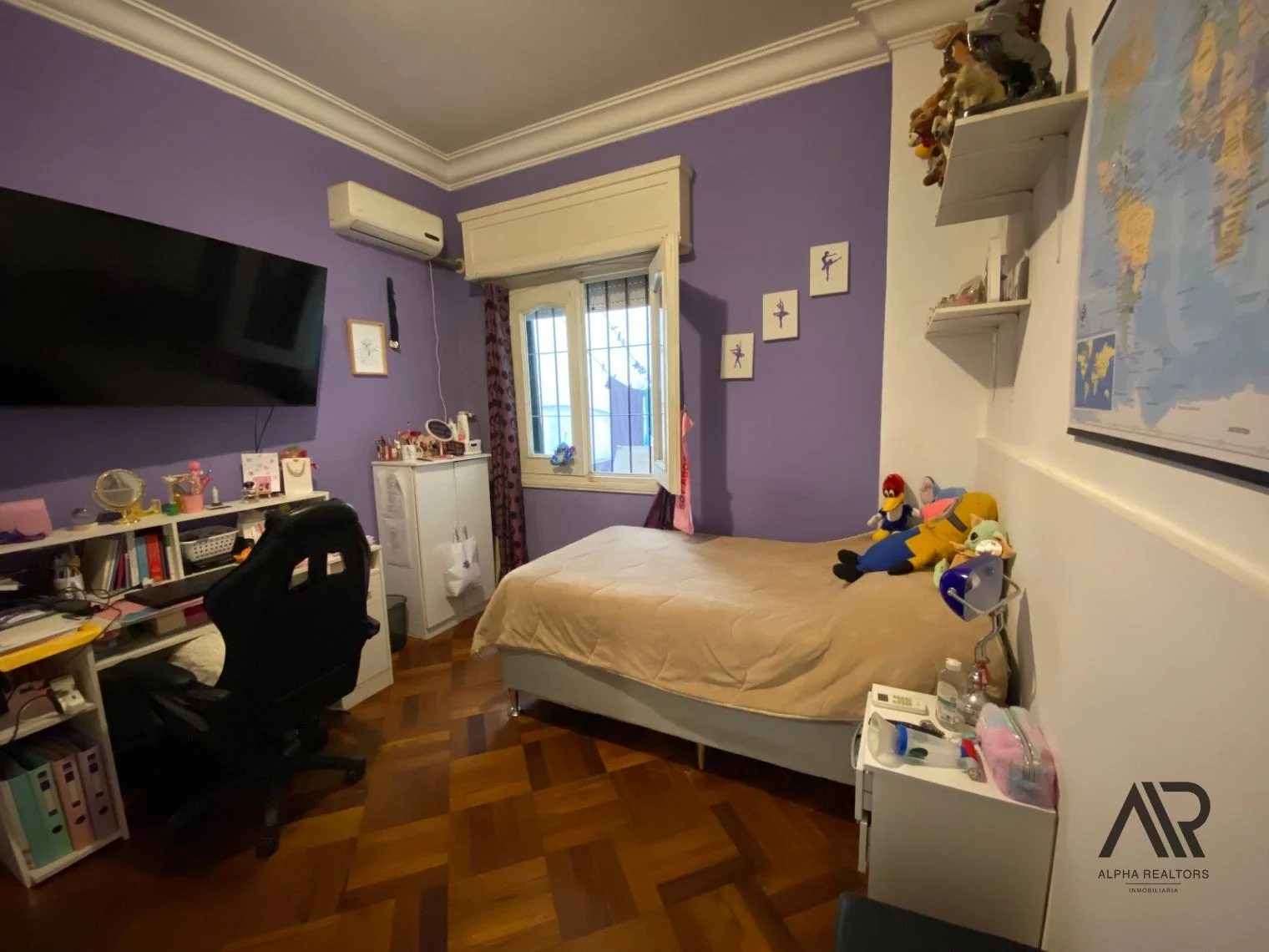 La unidad, situada en el primer piso, cuenta con 147 m² construidos, distribuidos en una planta generosa que incluye tres amplios dormitorios más un cuarto de servicio, así como dos baños con la posibilidad de un tercero, actualmente utilizado como vestidor, con instalaciones ya previstas.