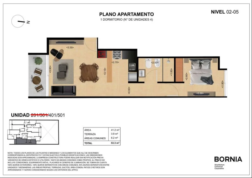 -36 apartamentos distribuidos en monoambientes, 1 y 2 dormitorios.