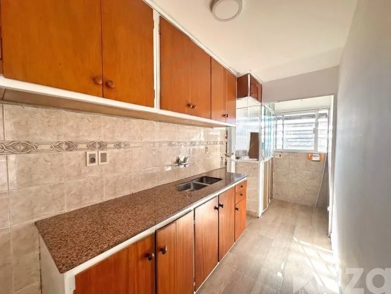 La cocina independiente reciclada, es amplia y funcional, equipada con muebles aéreos y bajo mesada, mesada de granito y pileta. Además, dispone de una terraza lavadero con conexión para lavarropas y cuenta con calefón.