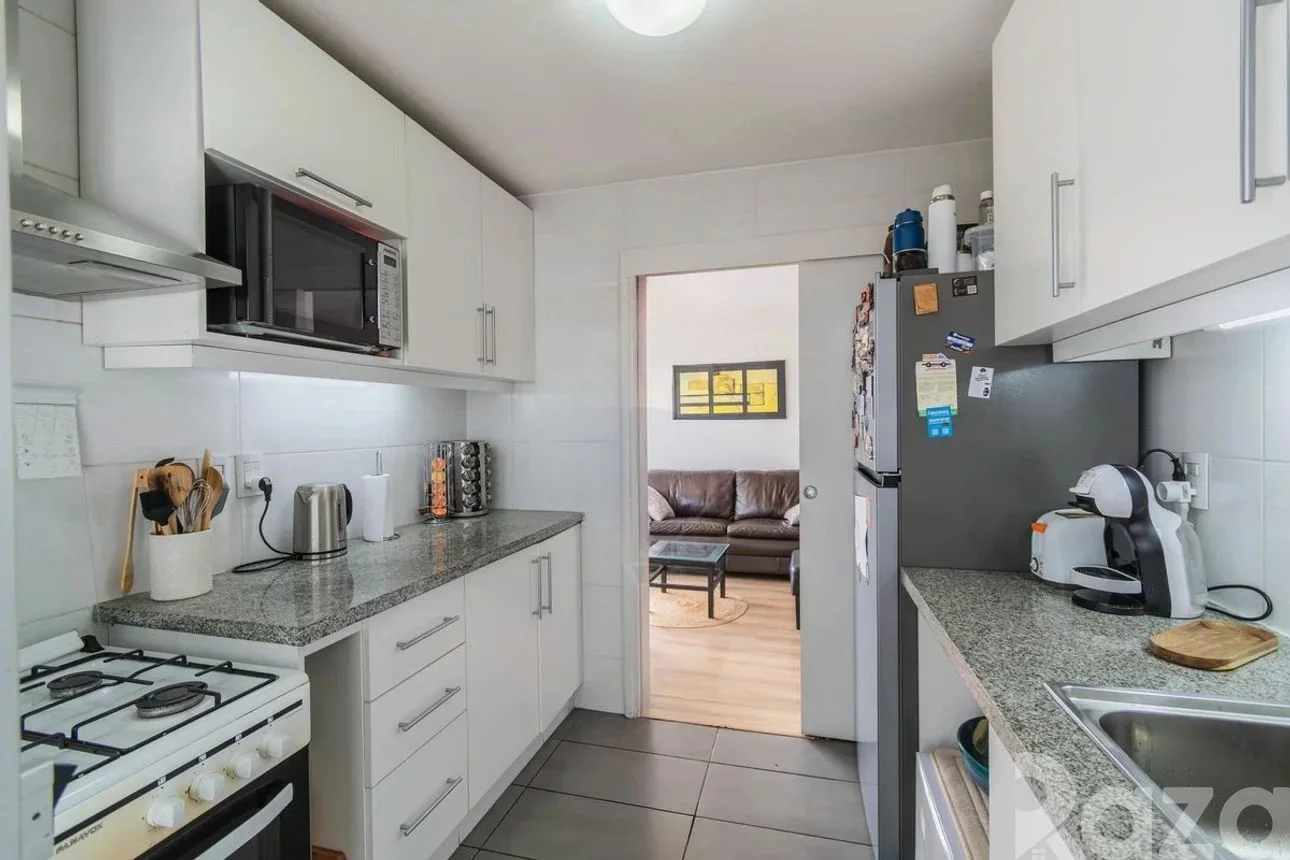 La cocina definida se integra con acceso a terraza lavadero, mientras que el living comedor se abre hacia un balcón al frente con vista despejada sobre Samuel Blixen.