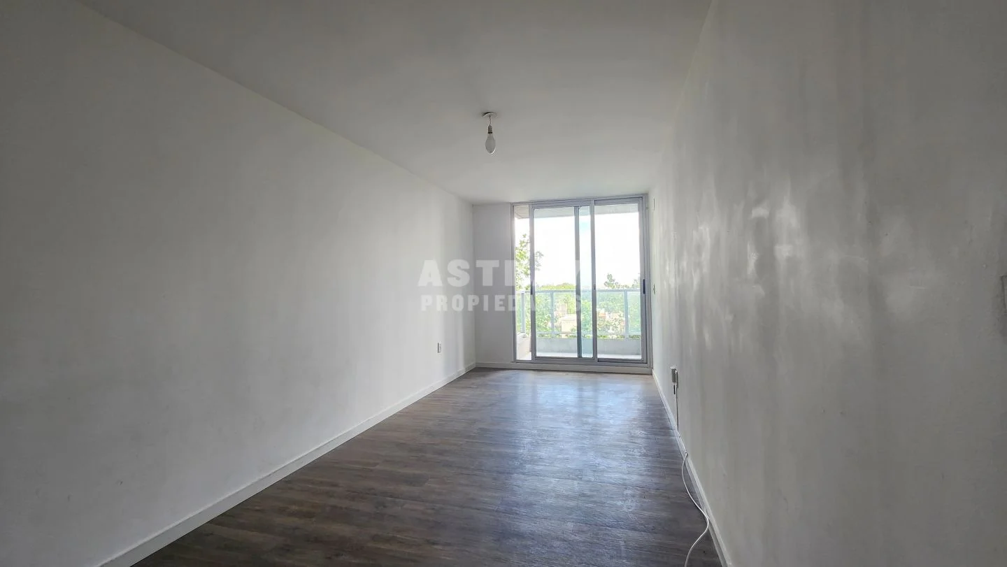 Living-comedor al frente con ventanal, desde allí se accede al balcón.