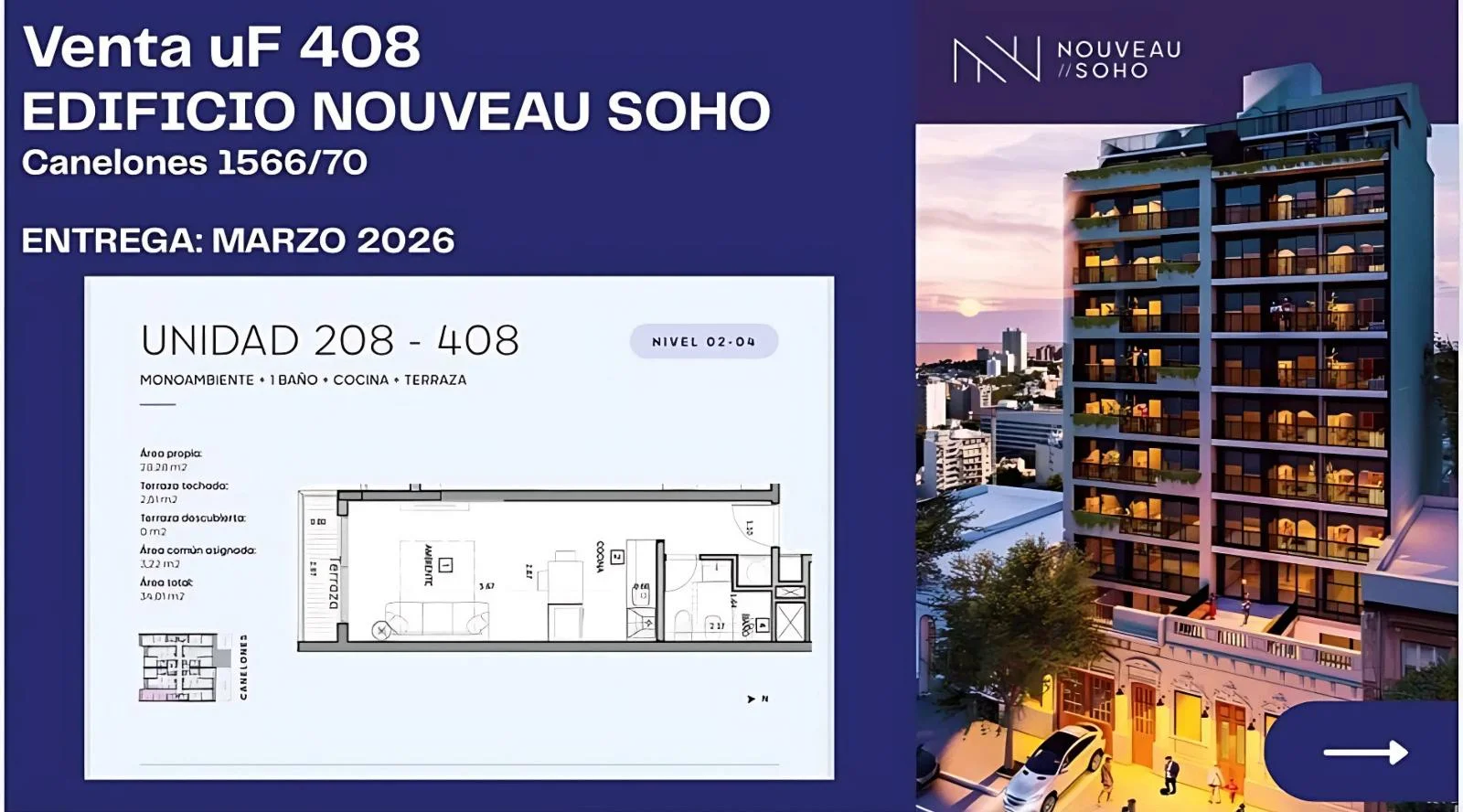 Descubre este hermoso monoambiente en una zona de constante crecimiento, ubicado sobre Canelones en Palermo, ideal tanto para tu primera vivienda como para una inversión estratégica. Con un precio de U$D 85.000, este inmueble no solo ofrece un espacio acogedor con un baño completo, sino que también cuenta con los gastos de ocupación incluidos en el precio de venta. La entrega está programada para marzo de 2026, brindándote la oportunidad de planificar tu futuro en un entorno en expansión.