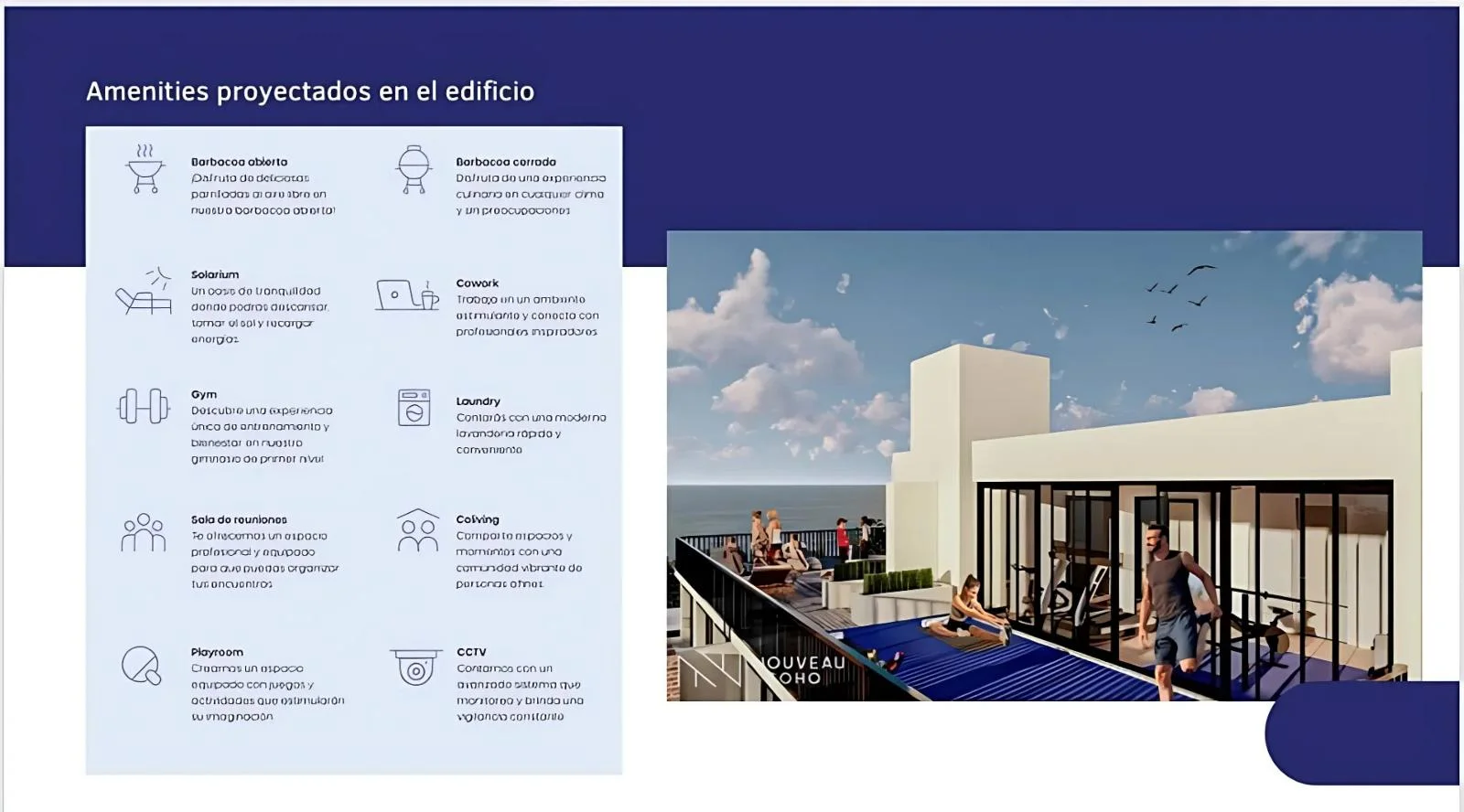 El apartamento tiene una orientación este, lo que asegura una excelente entrada de luz natural durante las mañanas. Además, su disposición frente permite disfrutar de vistas despejadas. Entre sus características sobresalientes se encuentran acceso a agua corriente, luz, conexión para lavarropas y WiFi. Este espacio es apto para uso profesional, lo que añade versatilidad a su funcionalidad. También podrás disfrutar de diversas amenidades como área de juegos infantiles, salón de usos múltiples, gimnasio, cowork y un solarium, todo en un entorno seguro que permite mascotas.