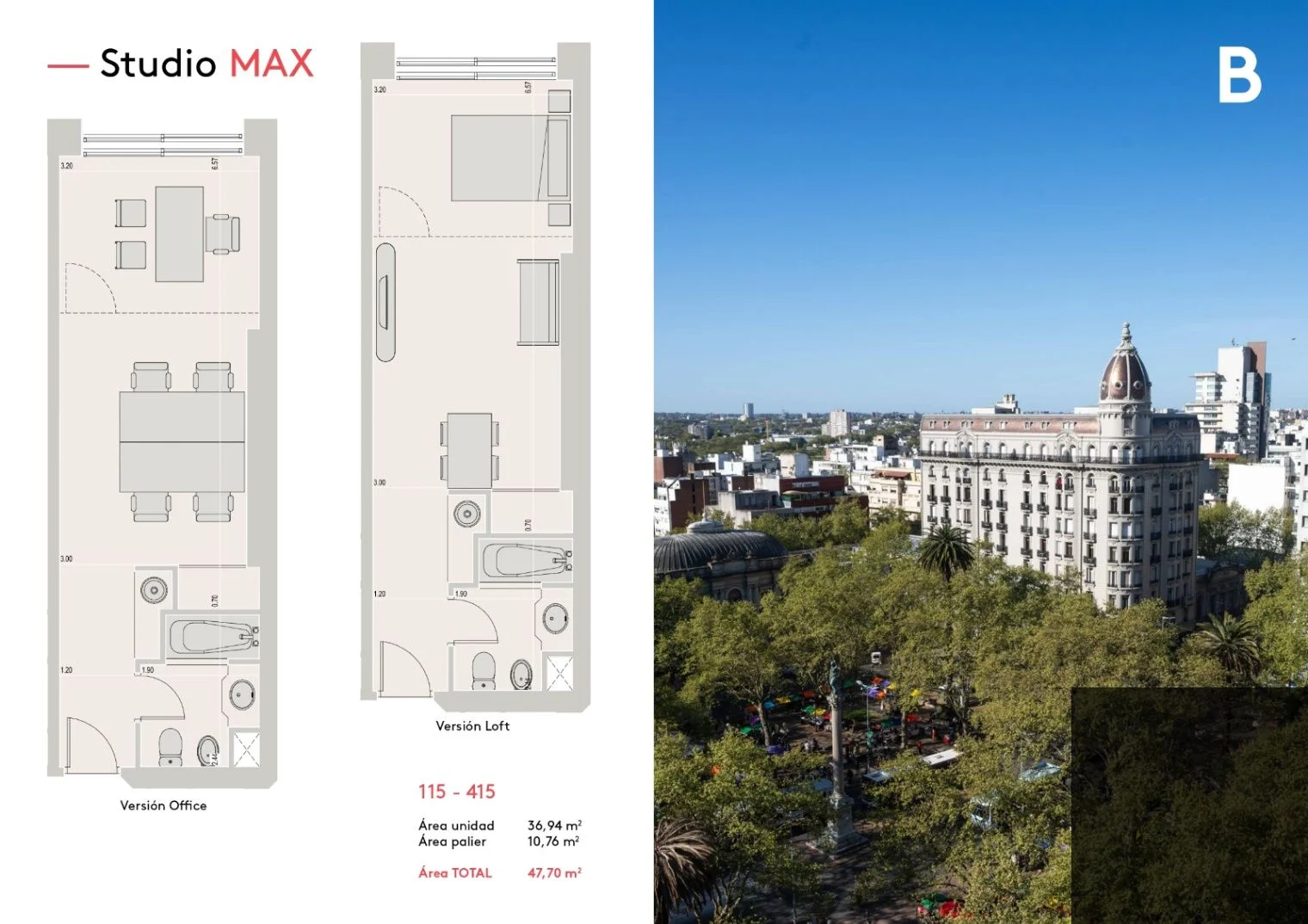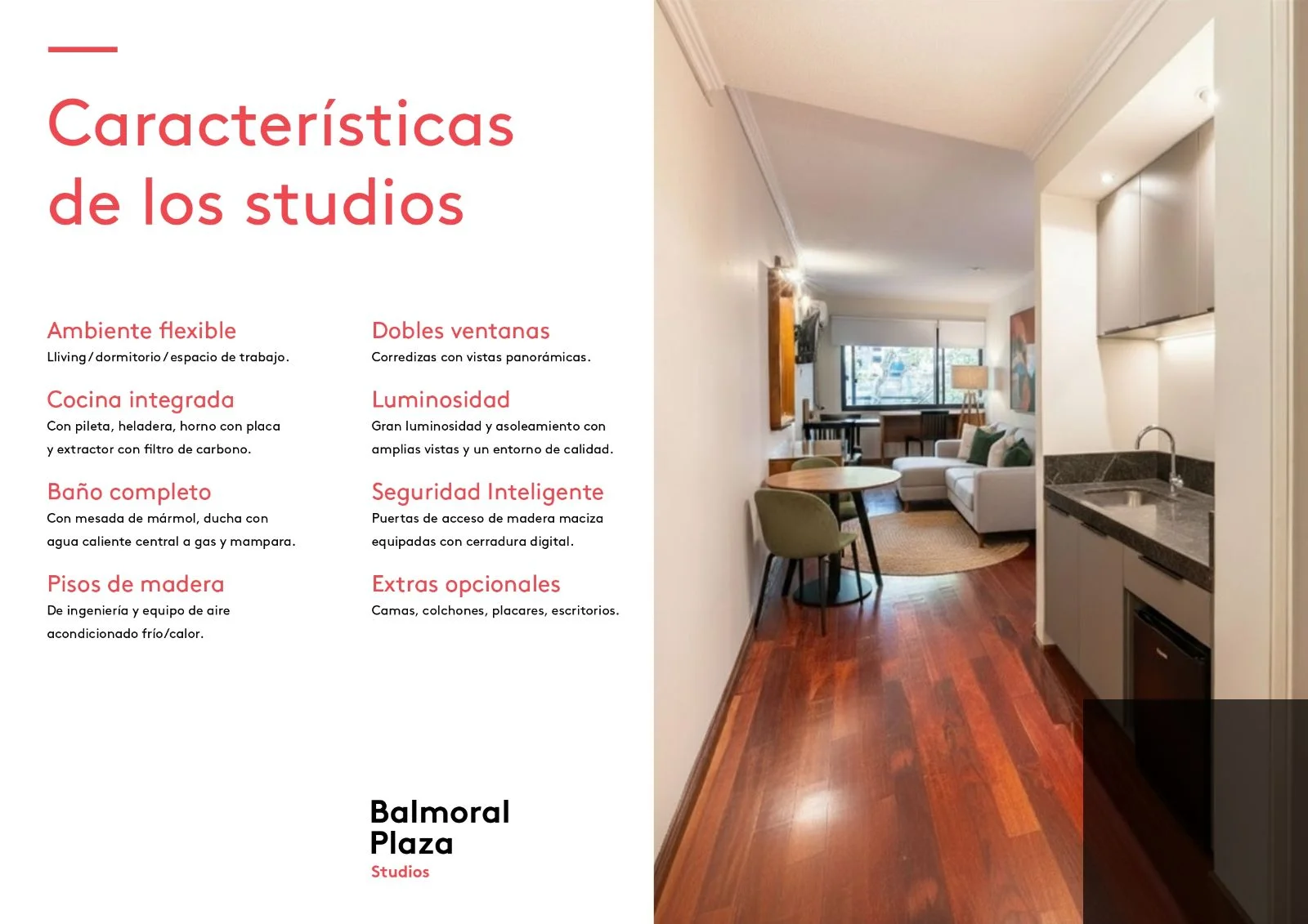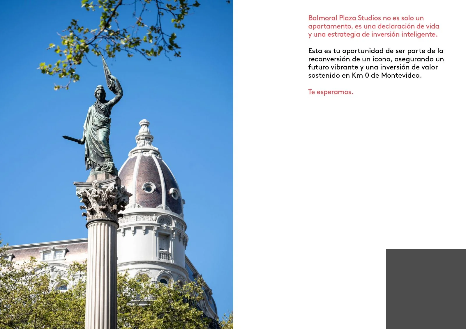Balmoral Plaza Studios, ubicado frente a la emblemática Plaza Cagancha, representa la reconversión de un ícono en el corazón de Montevideo. Este moderno desarrollo ofrece una oportunidad única para inversores, estudiantes o profesionales que buscan un espacio versátil y luminoso.