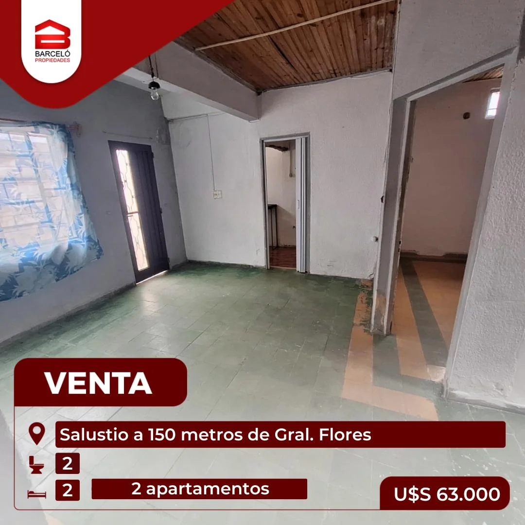 Dos apartamentos ubicados en la calle Salustio esquina Luis Galvani, a 150 metros de Gral. Flores, en el barrio Las Acacias, con una superficie total de 176 m², de los cuales 126 m² están edificados y 50 m² de patio.