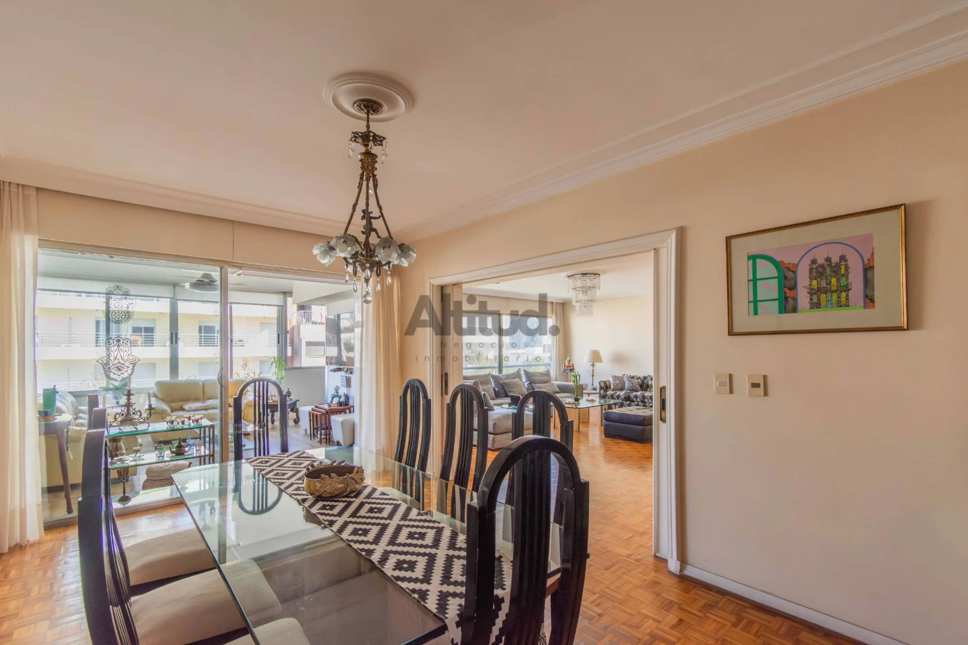 Dispone de 4 dormitorios más dependencia de servicio, 3 baños completos, y una terraza cerrada que aporta un ambiente adicional utilizable durante todo el año.