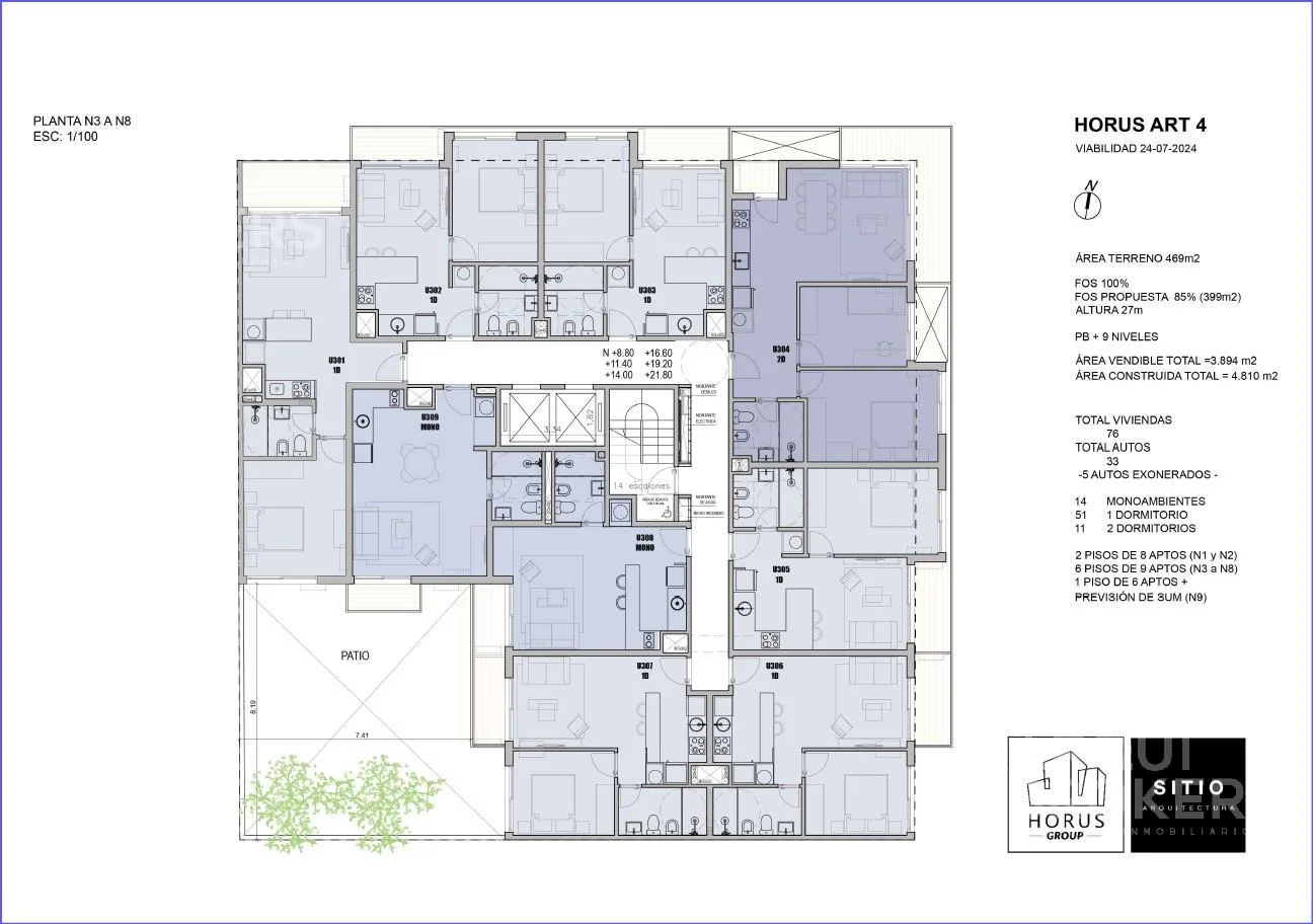 Piso 6 al contrafrente con orientación suroeste.