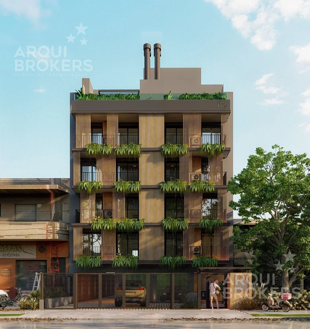 Amenities: barbacoa cerrada y equipada, parrillero con pérgola, solárium, laundry, cámaras con video vigilancia, garajes opcionales, previsión para carga de autos eléctricos, depósito y boxes.