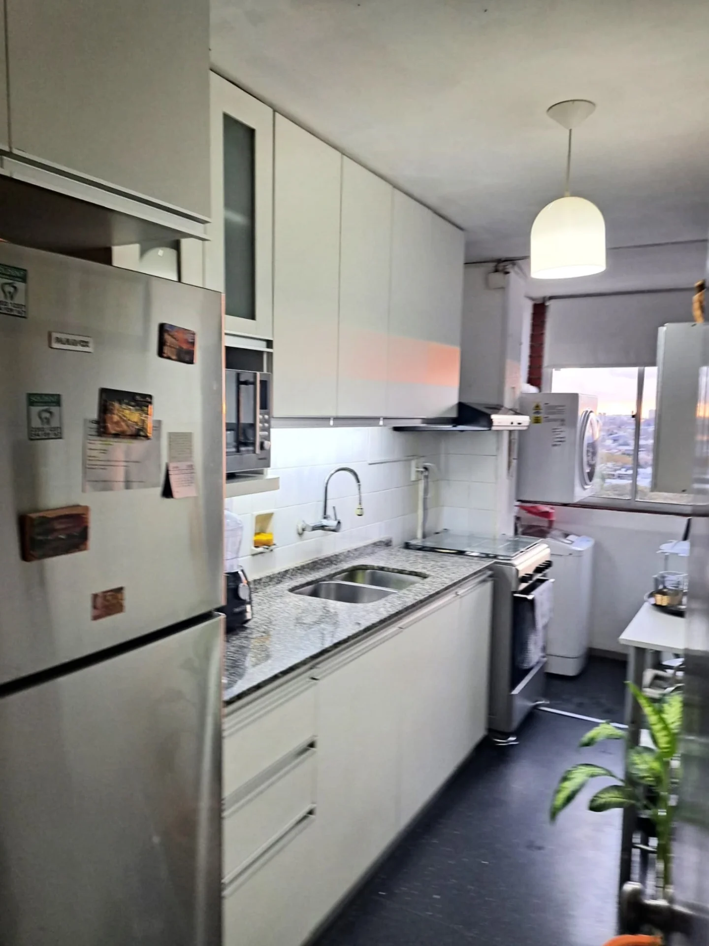 Los gastos comunes son bajos, incluyendo portería física 24 horas, cámaras de seguridad y alarma. Se ofrece la opción de estacionamiento en el parking del shopping contiguo a un costo accesible. El estado general del apartamento es excelente.