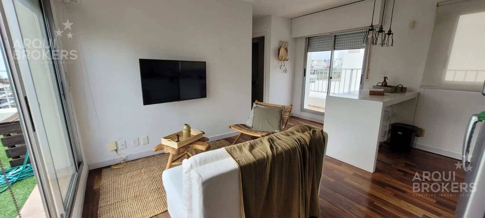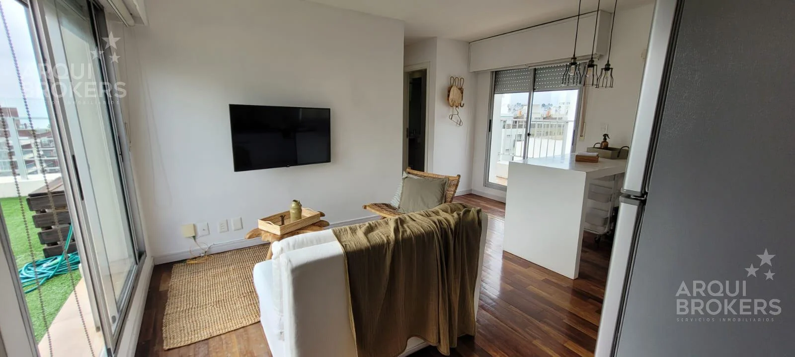 1 dormitorio amoblado, terraza super amplia con vista a rambla. Penthouse piso 10 EQUIPADO. Punta Carretas a una cuadra de Villa Biarritz.