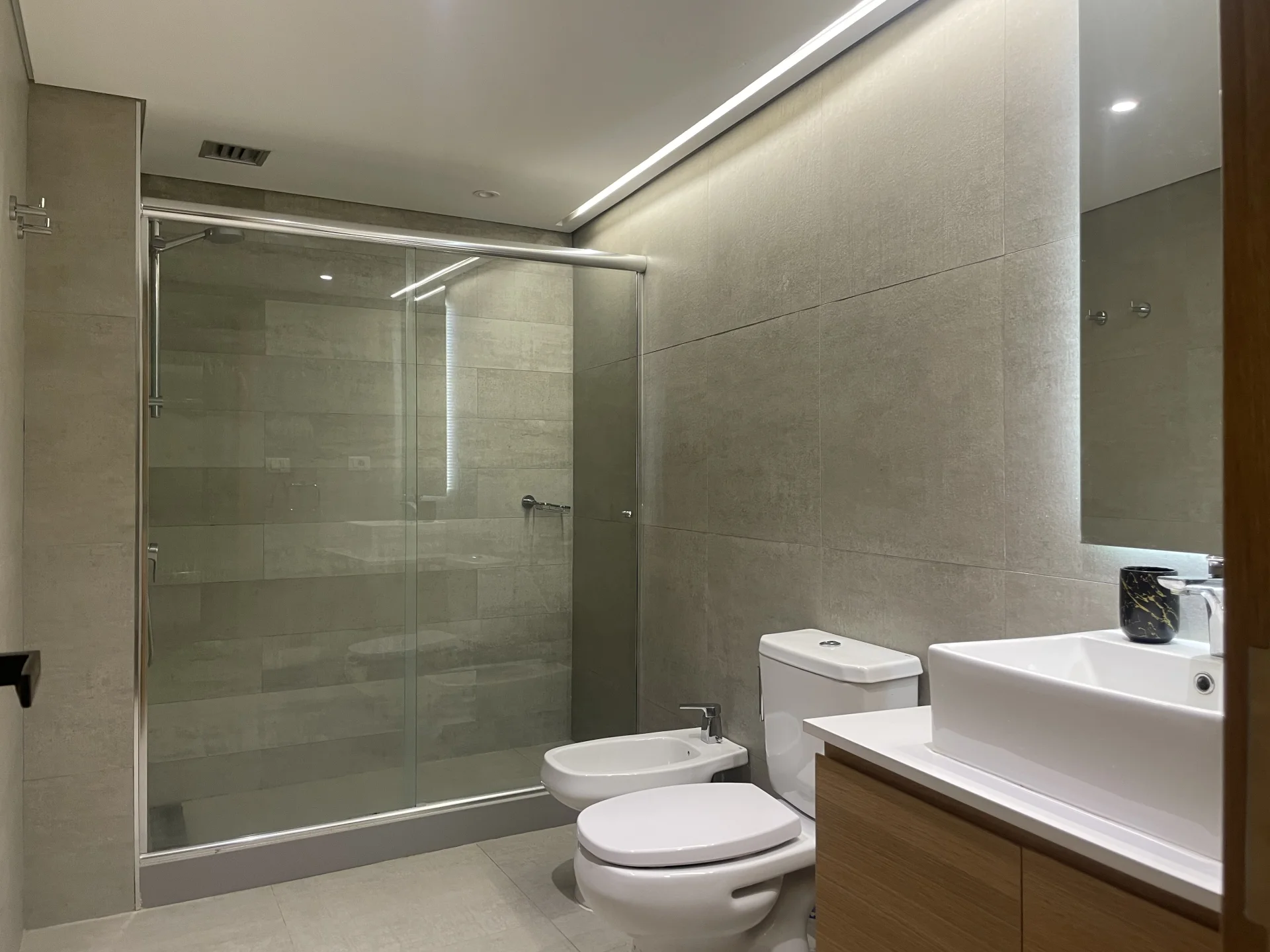 Todo el apartamento cuenta con calefacción por losa radiante individual por sector, incluyendo el baño, lo que brinda un nivel de confort térmico excepcional durante todo el año. El baño es amplio, elegante y muy por encima de la media, acompañando el estándar general de la propiedad.
