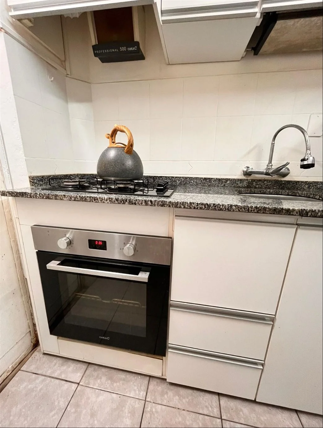 Cocina moderna con muebles a medida, anafe y horno eléctrico, hecha a nuevo.