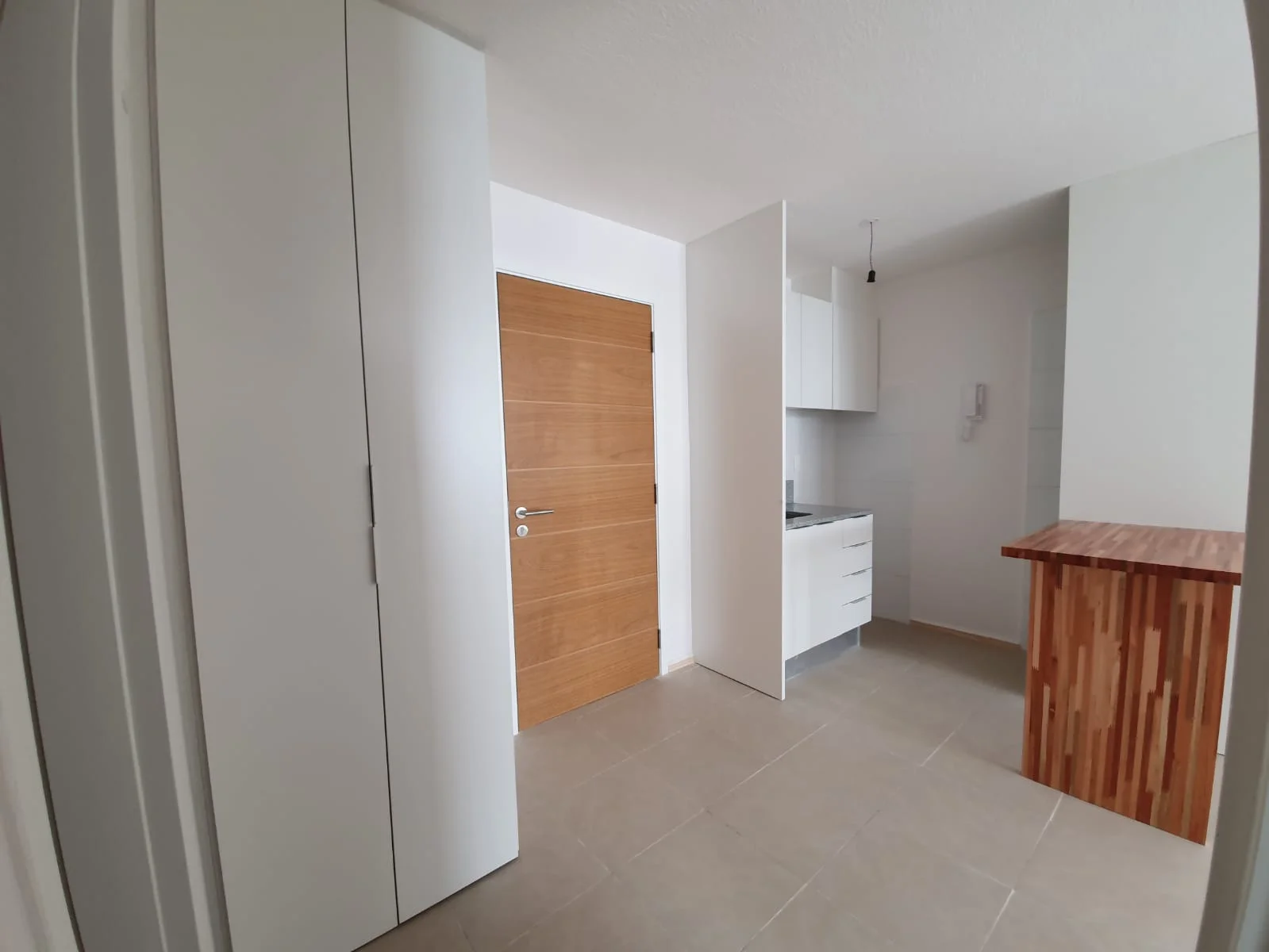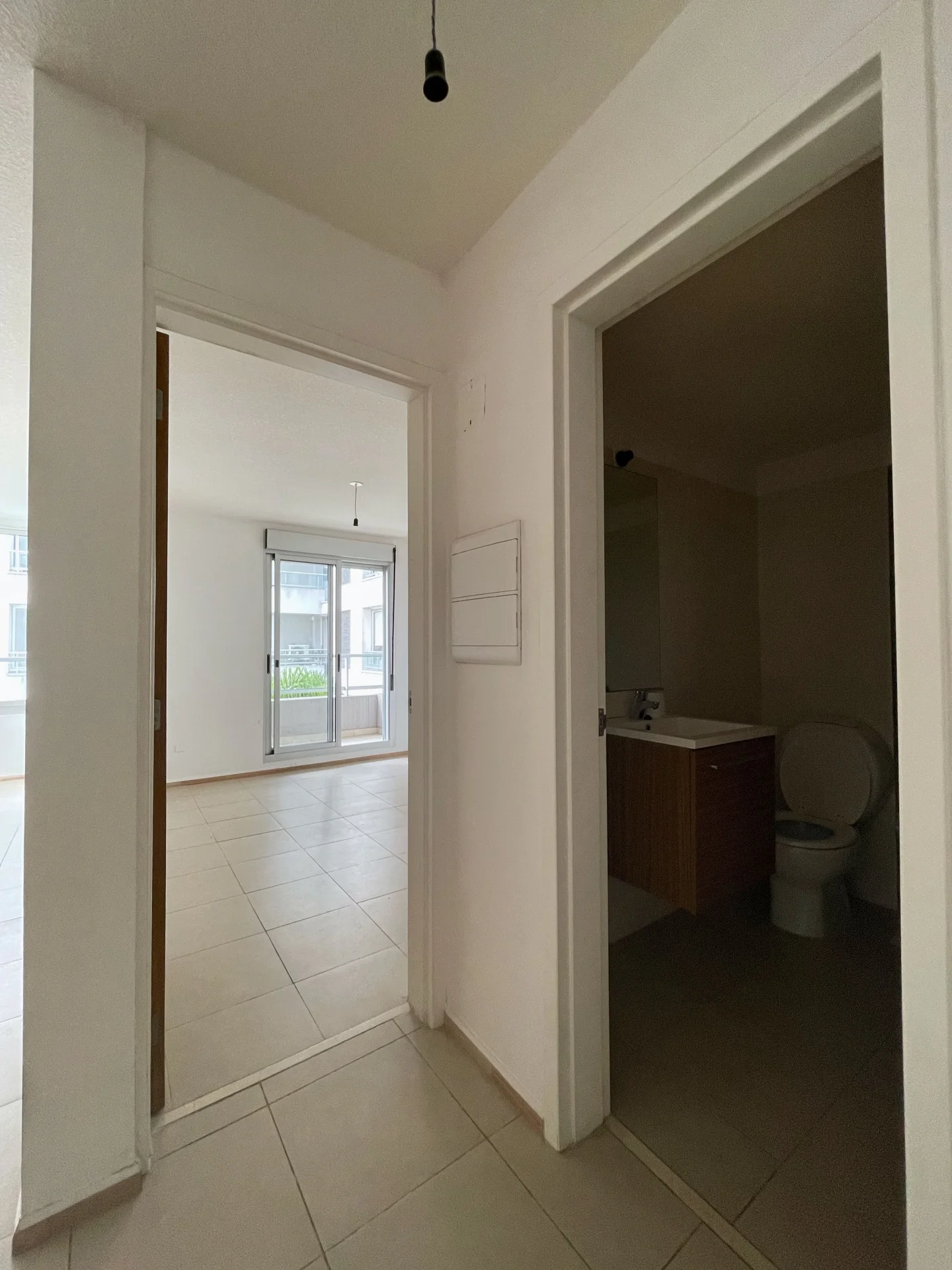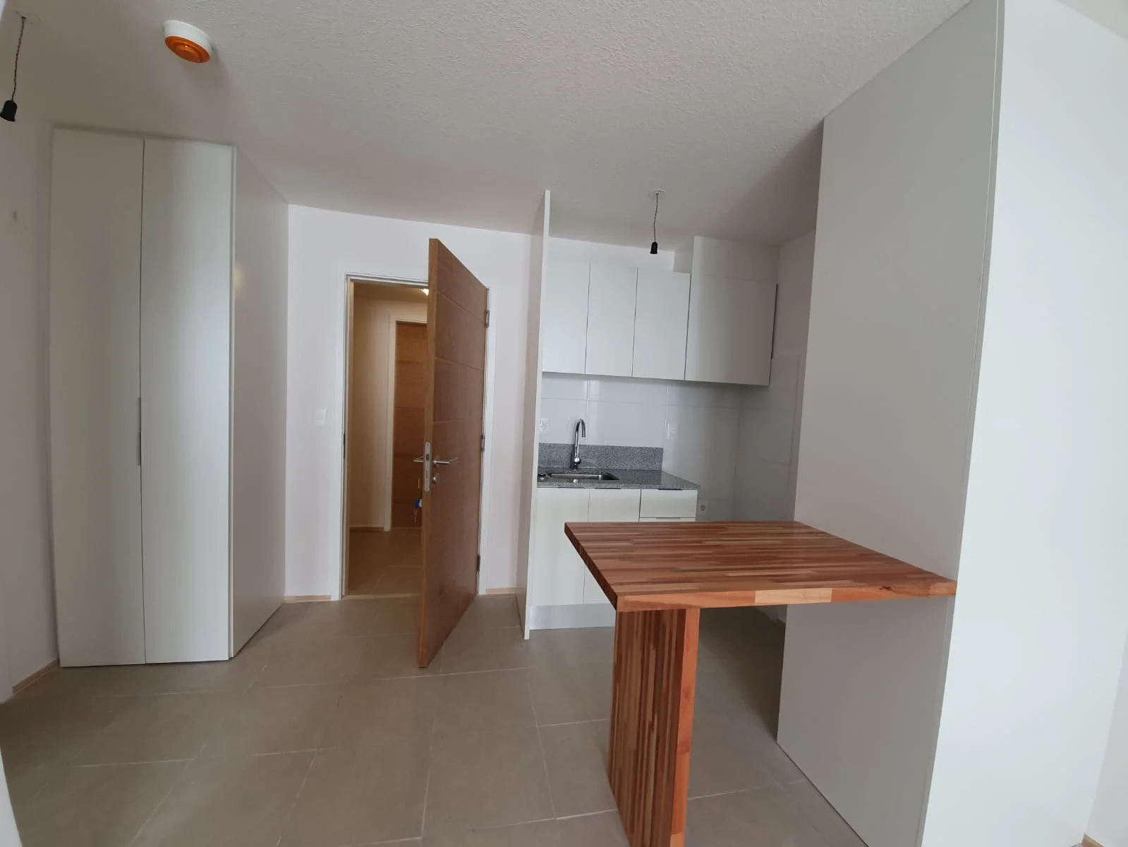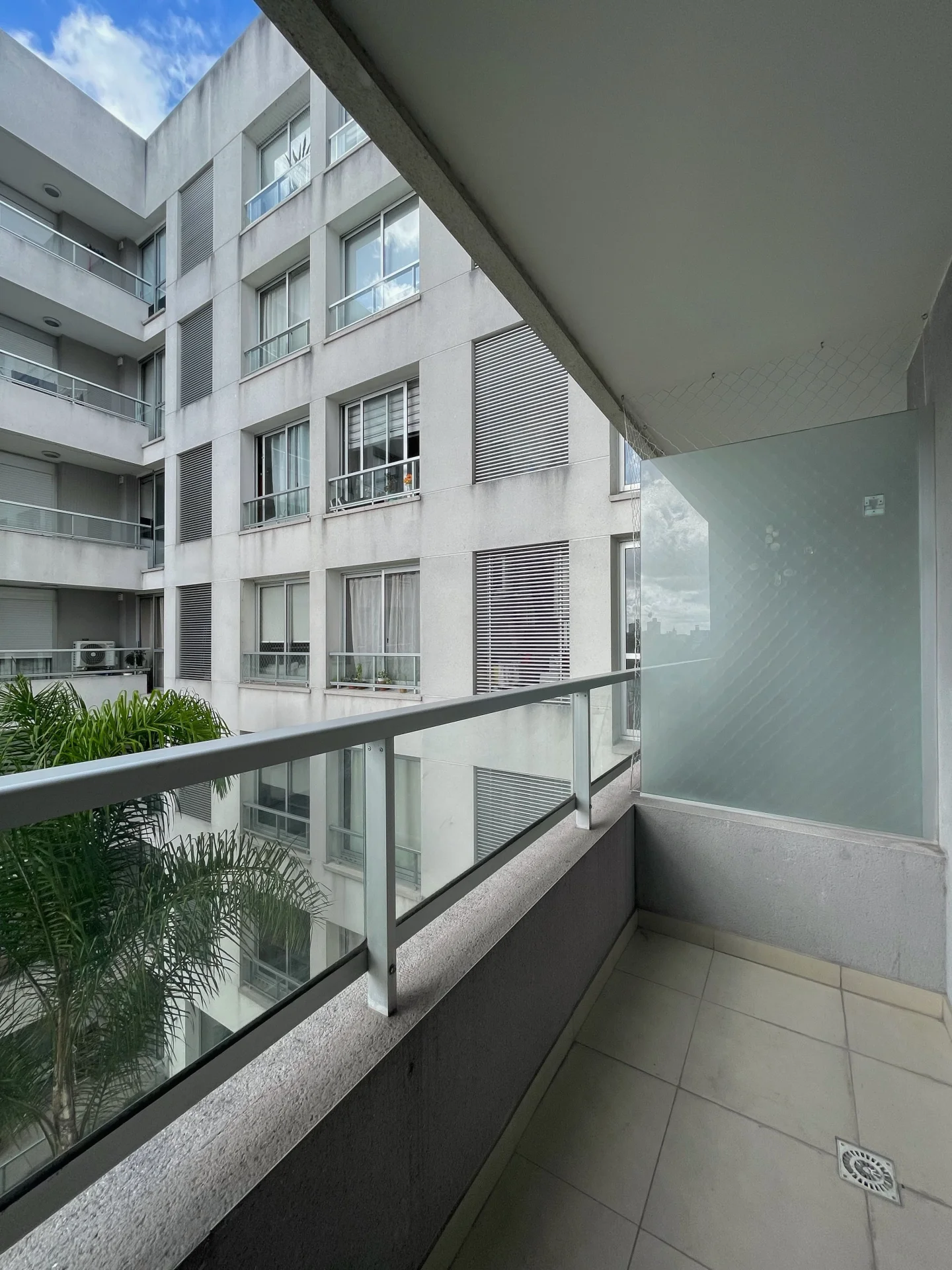 Apartamento de 43 m² de superficie total y 40 m² de área privada, ubicado en un edificio moderno con vistas al entorno urbano.