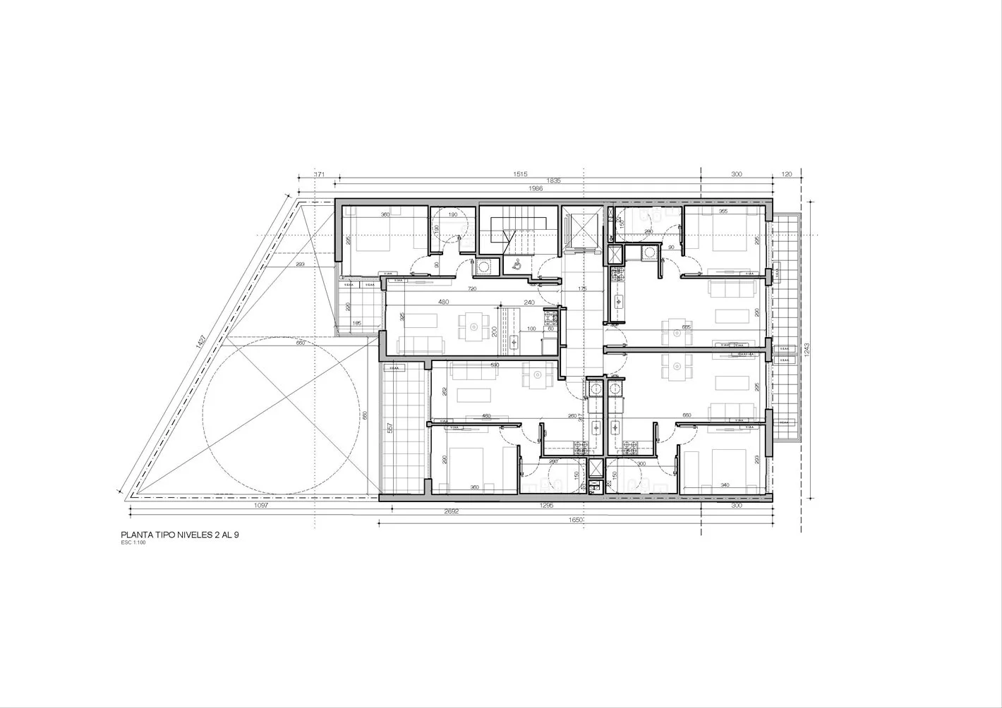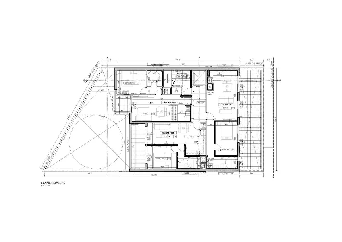El edificio cuenta con 39 unidades de 1 dormitorio distribuidas en 12 niveles: planta baja con estacionamientos, niveles 1 al 10 con apartamentos y un nivel 11 con amenities.