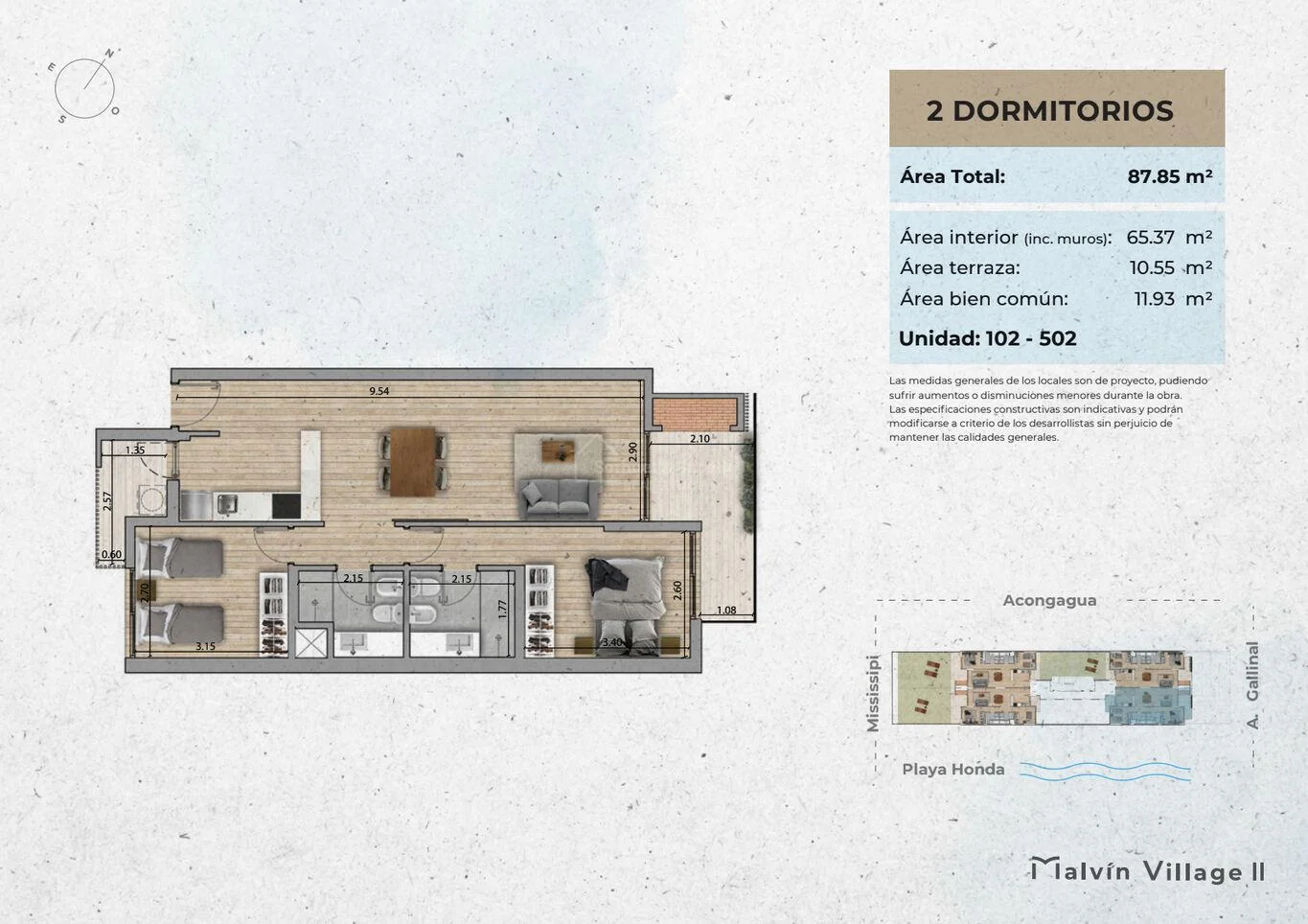 El edificio cuenta con elegantes apartamentos de 2 y 3 dormitorios, diseñados para ofrecer confort y calidad de vida. Con un estilo moderno y funcional, Malvín Village II es la elección perfecta para quienes buscan vivir en un entorno natural sin renunciar a las ventajas urbanas.