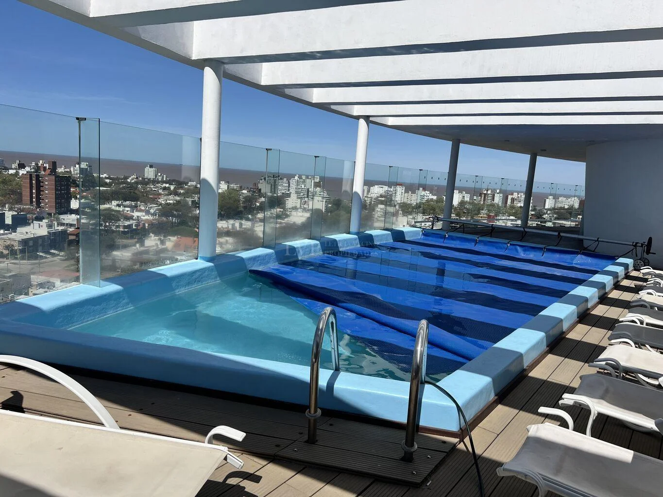 SUPER LUZ Y VISTA DESPEJADA, Living comedor al frente con balcon, cocina integrada con barra. 2 dorms (uno en suite), 2 baños completos. Ventanas dobles en todo el apto . Vig. 24 hrs. Amenities: Piscina, gym, parrillero, sala de juegos. Luminarias, cortinas rollers.