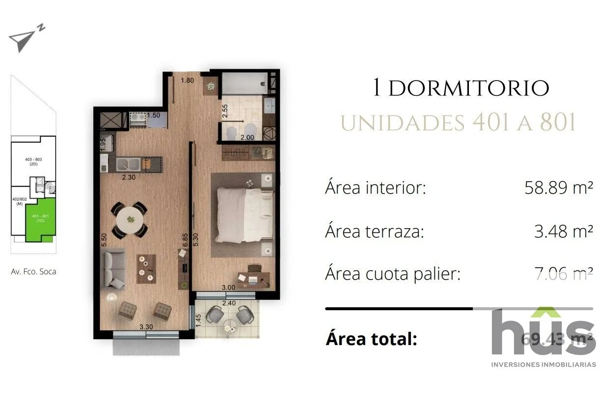+ $ 7,500 Дополнительно / U$S 3,383/m2