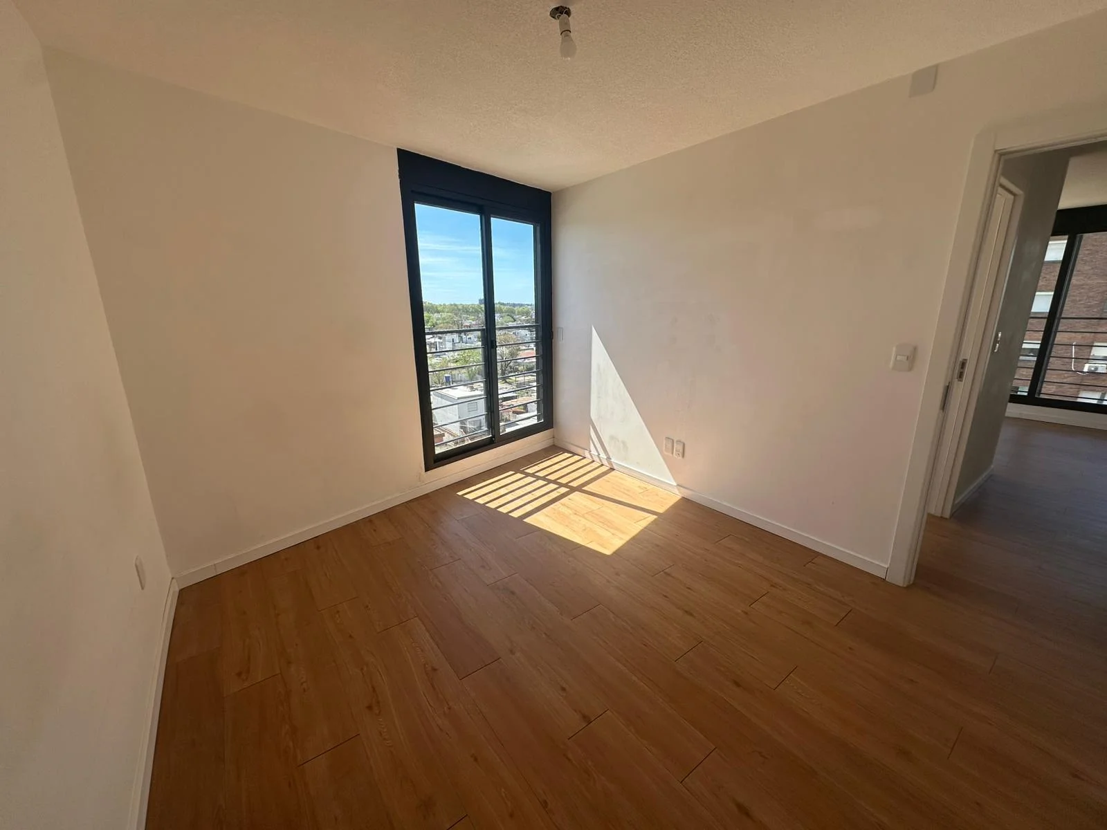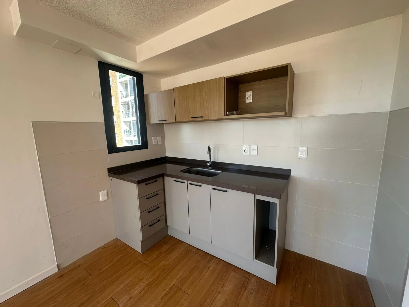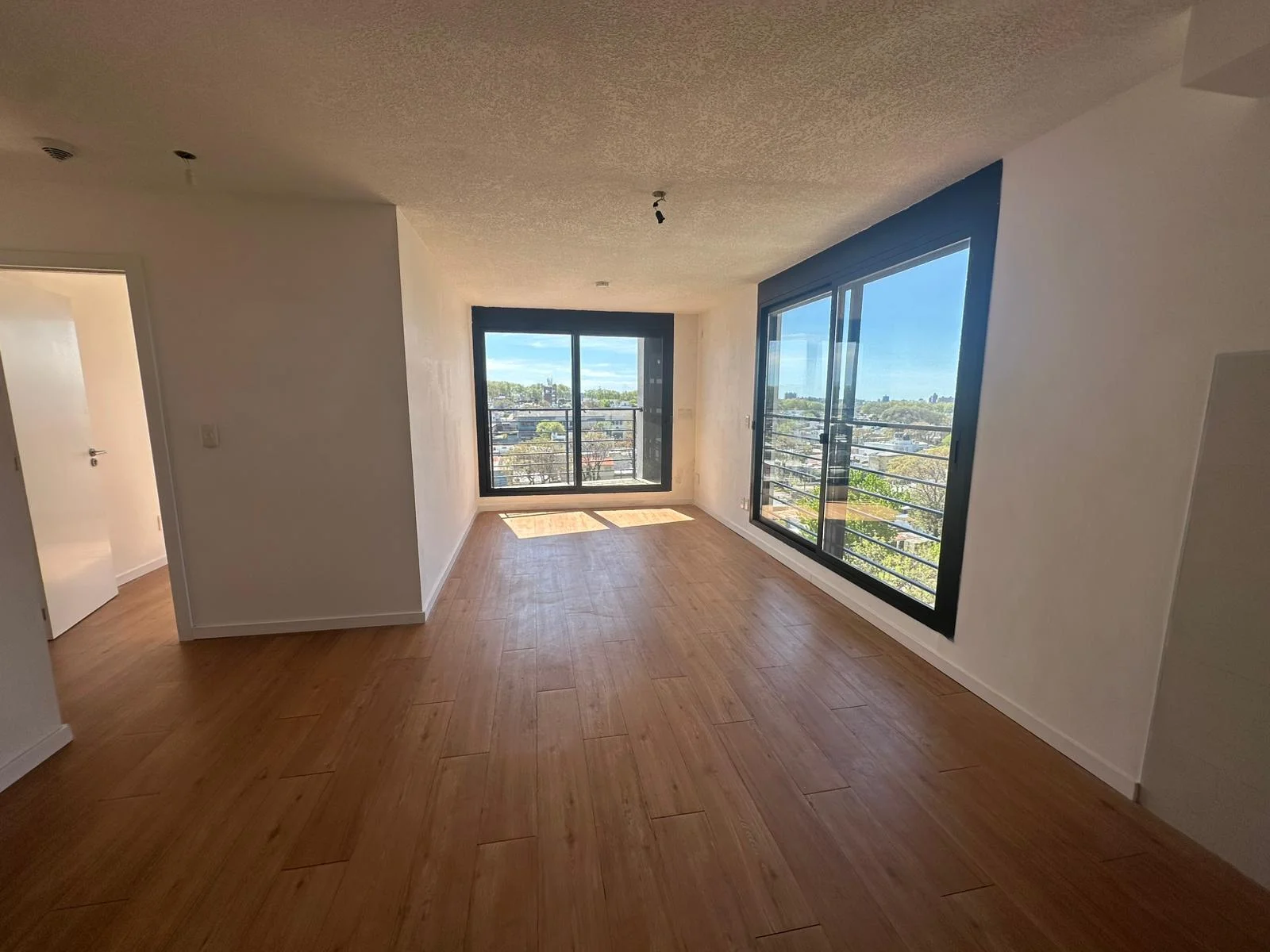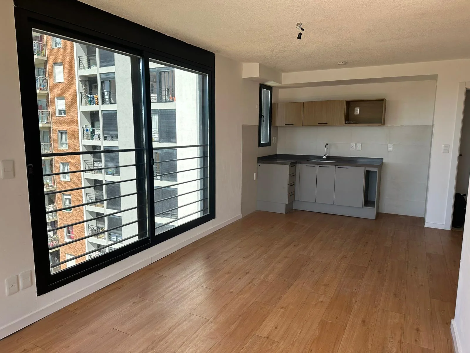 Amplio living comedor con salida a la terraza, cocina integrada con muebles aéreos y bajo mesada.