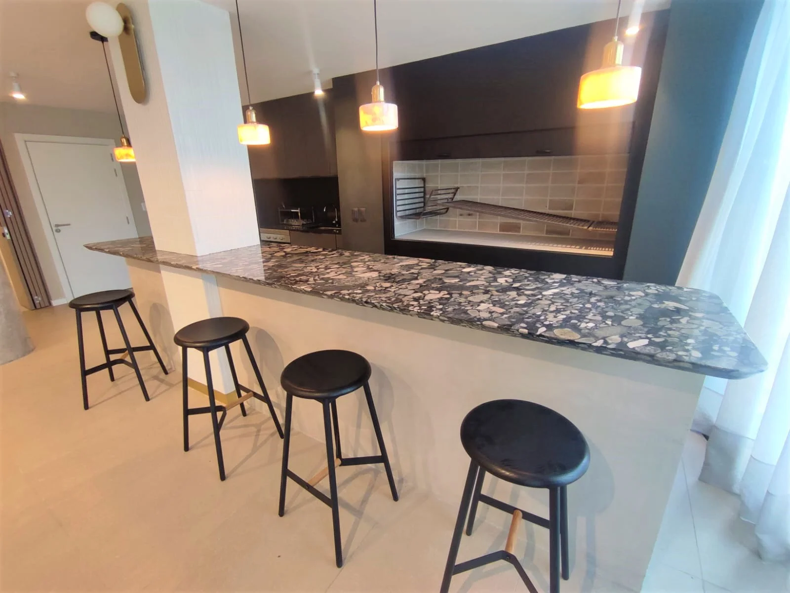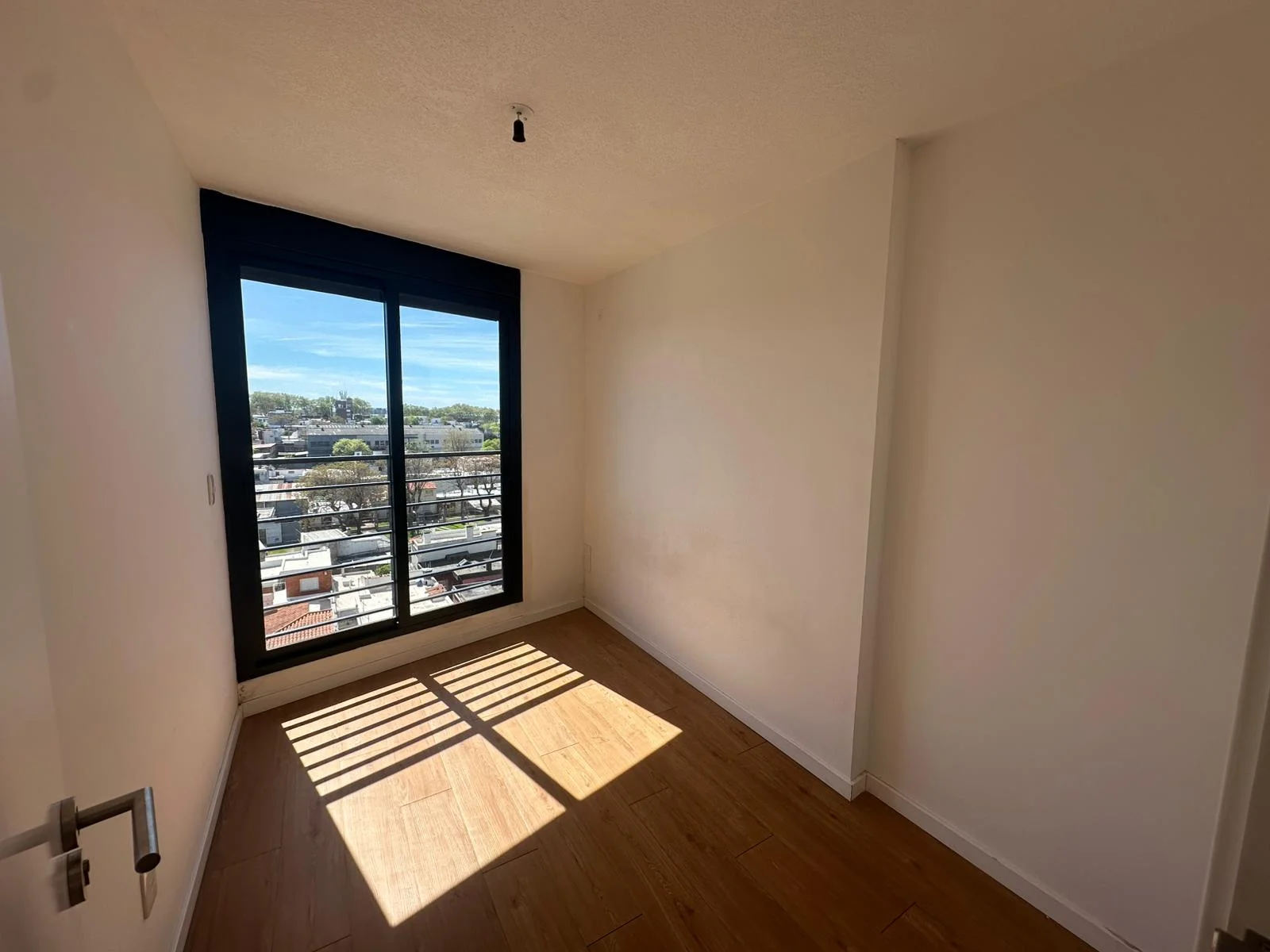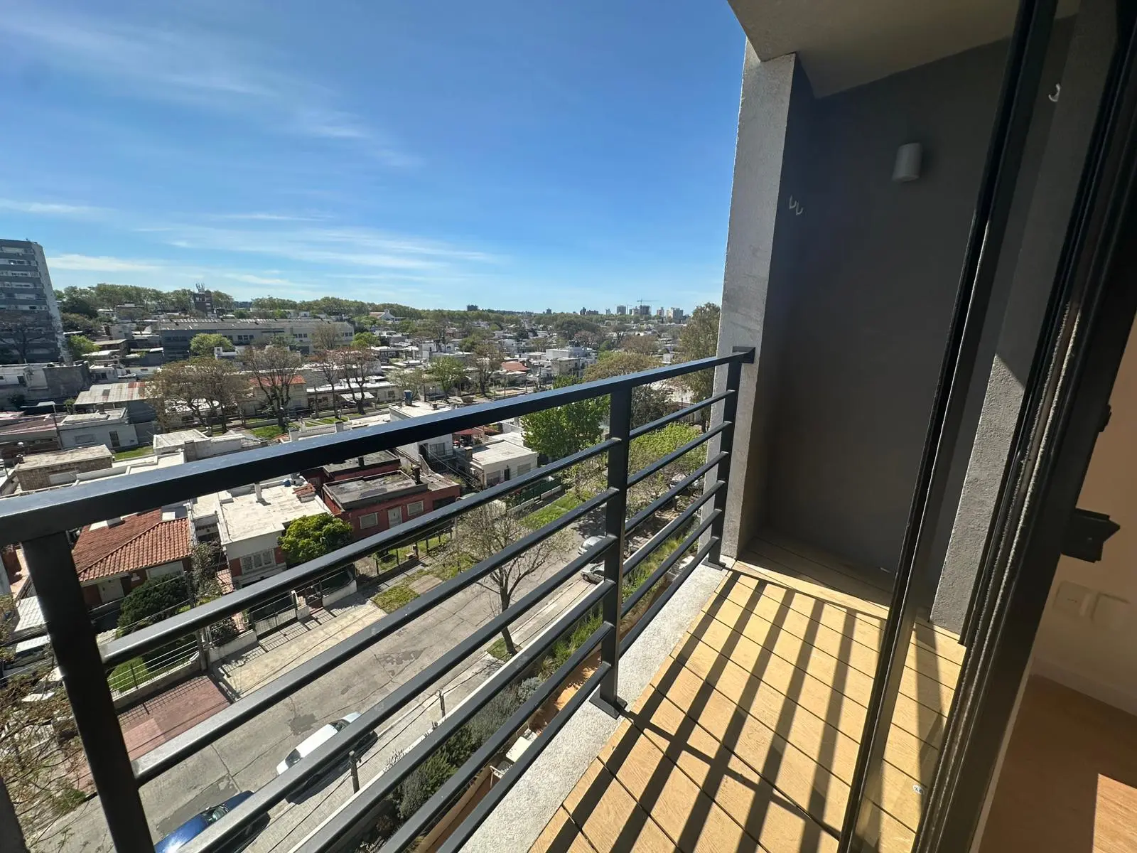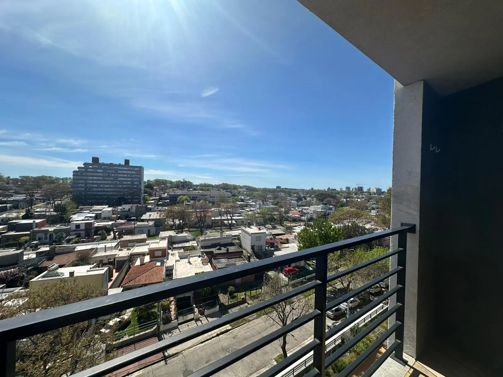 Amplio living comedor con salida a la terraza, cocina integrada con muebles aéreos y bajo mesada.