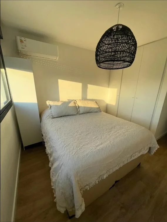 Dormitorio con placard empotrado, cortinas de enrollar y black out.