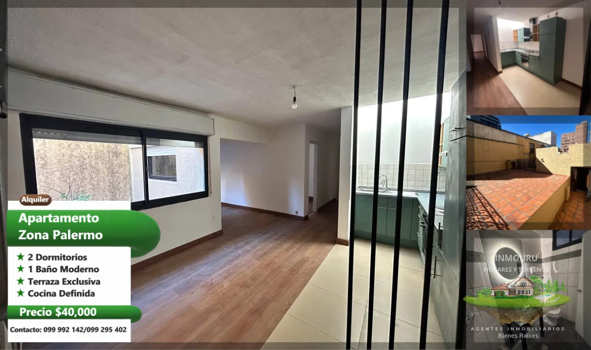Apartamento en Palermo - Montevideo Ubicada en Aquiles lanza esq Canelones - Palermo 2 Dormitorios 1 Baño Tiene patioterraza(uso exclusivo) No tiene parrillero No tiene estufa No tiene garage No acepta mascotas Garantías: Aseguradoras Porto, Sura, Anda, Contaduría general. Alquiler $40.000 al Mes Sin GC 70 m2 construidos + 40m terraza Cocina : Definida, Living Comedor Consulte sin compromiso, estamos a sus ordenes!. Honorarios Profesionales: 1 Mes de Alquiler + IVA Agente: Valeria. Referencia Interna : Tera-1974
