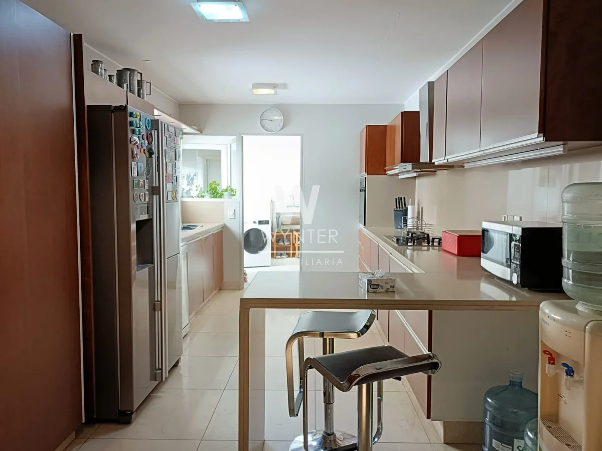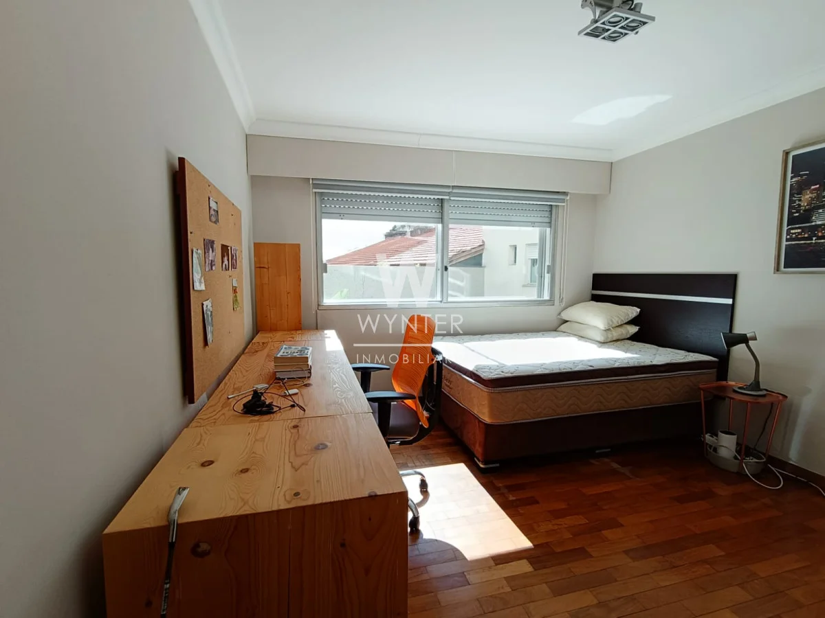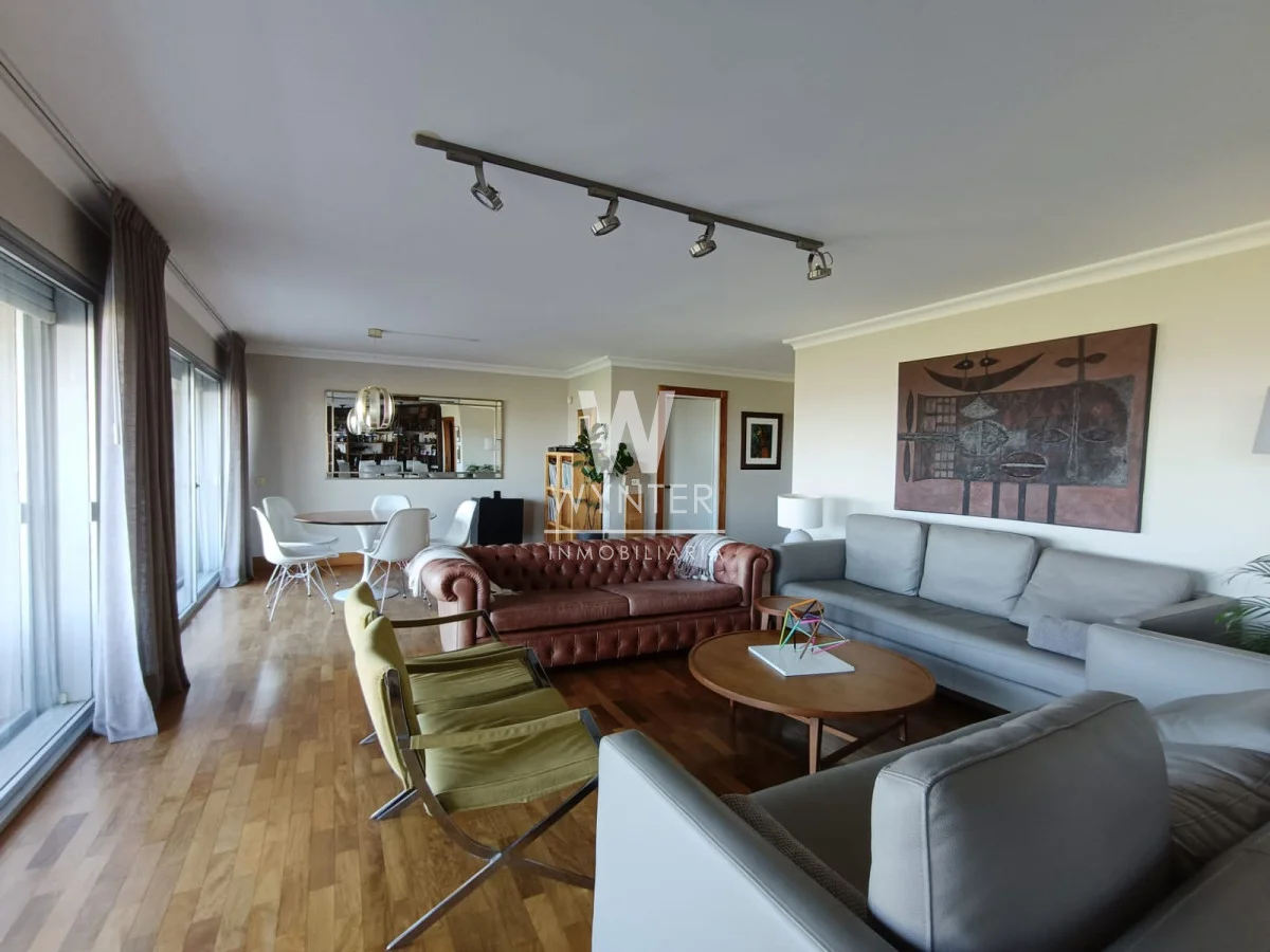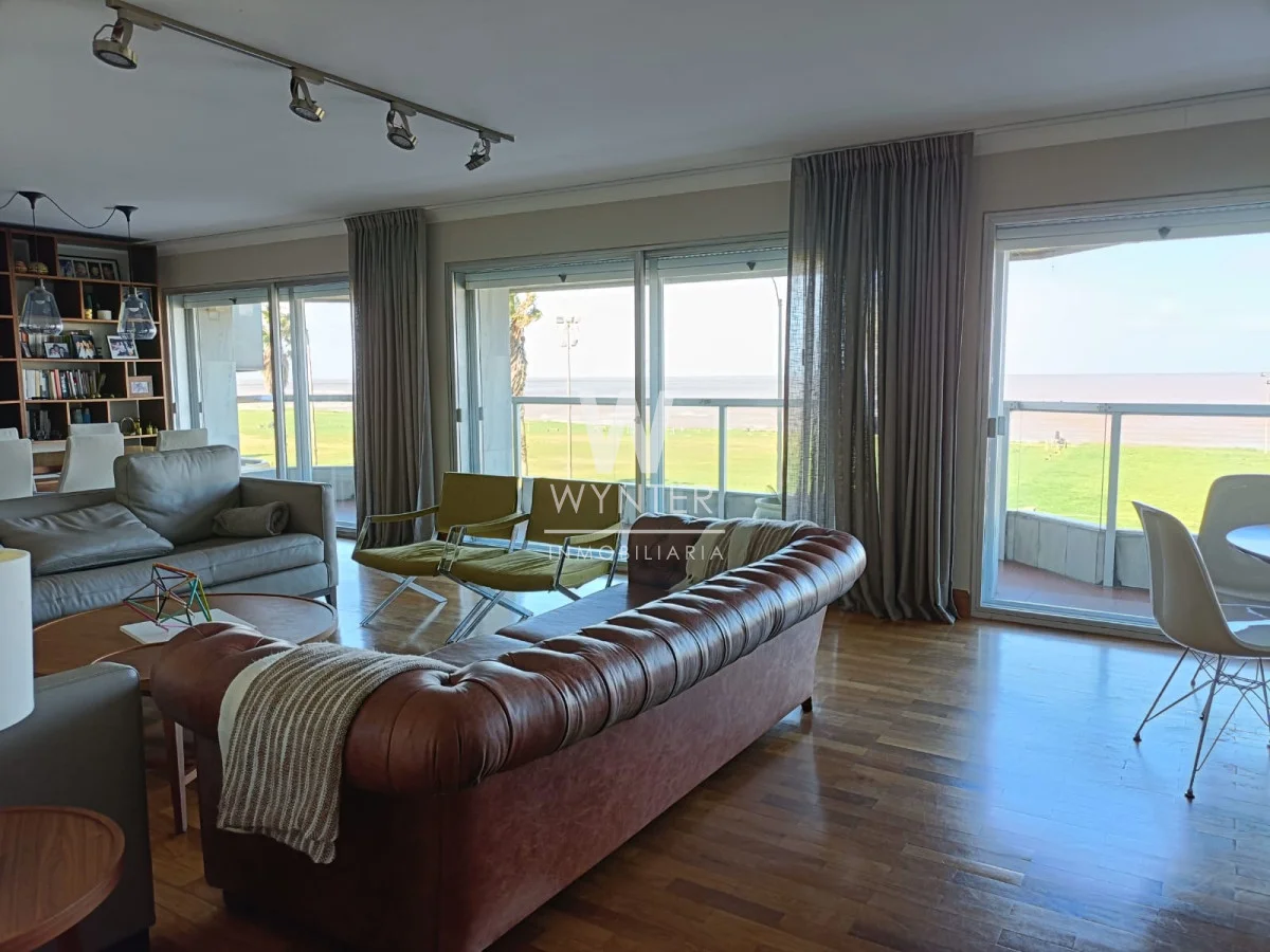 La unidad cuenta con 4 dormitorios (el principal al frente en suite con vestidor), 3 baños, gran living comedor con muy buena vista a la Rambla, terraza, estar , cocina definida con mucho lugar de guardado, y dependencia de servicio.