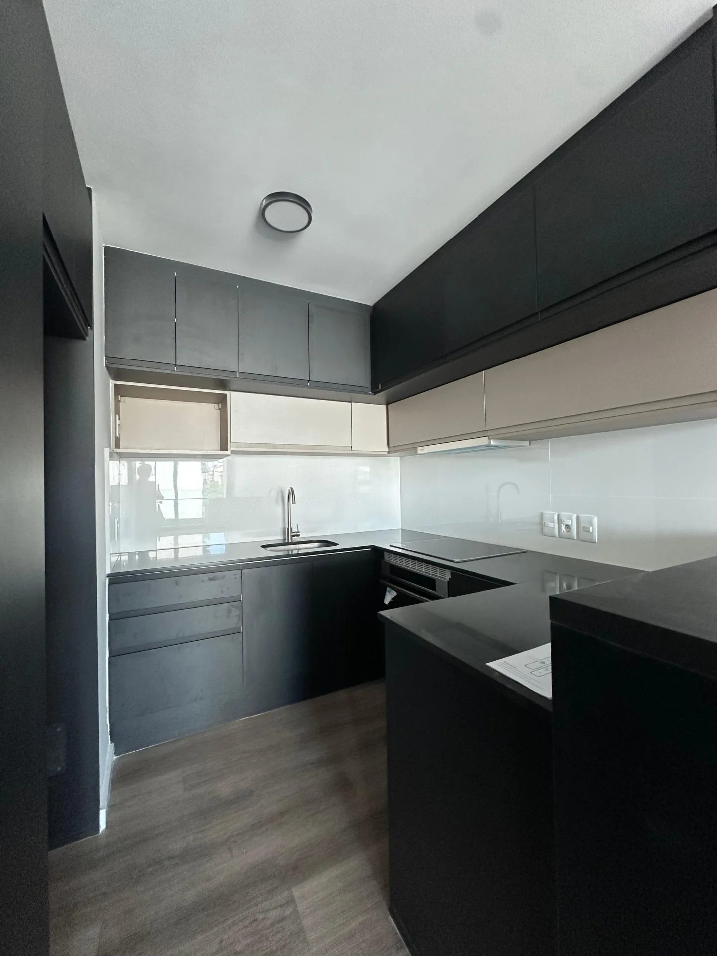 Living comedor con aires acondicionados ya instalados. Cocina integrada con barra y muebles aereos y bajo mesada, calefon, anafe y campana ya isntalados. Dormitorio y baño. Balcon de 7 m².