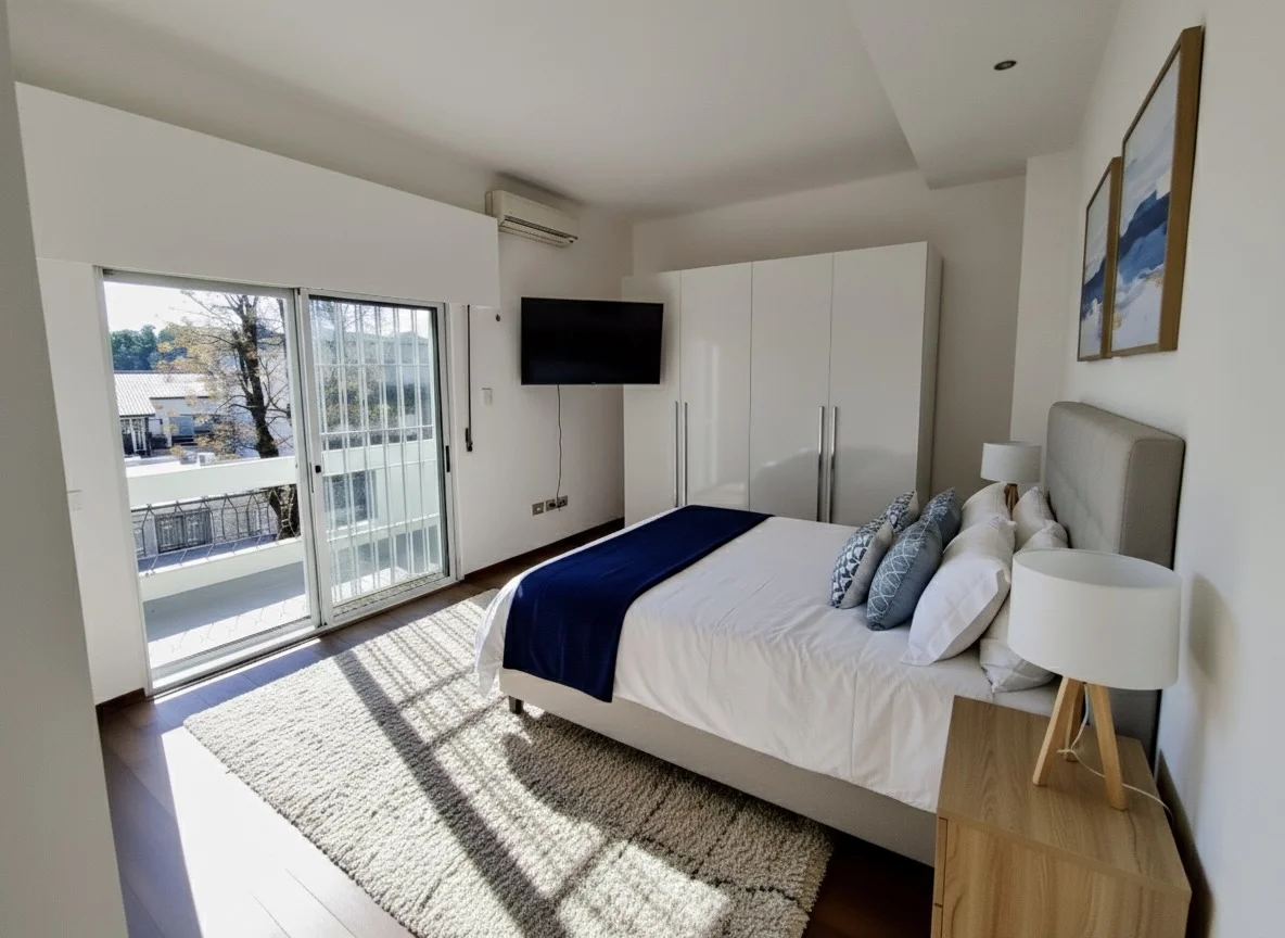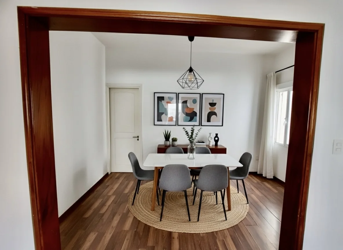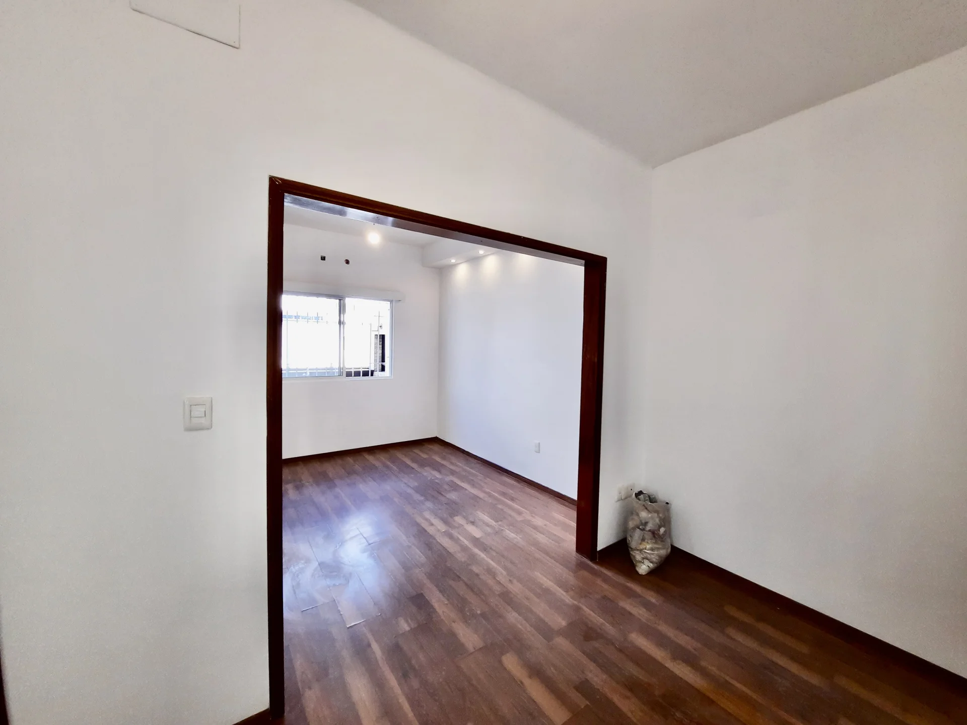 El living comedor ofrece aire acondicionado y piso de madera. La cocina definida cuenta con muebles aéreos, bajo mesada, campana extractora y conexión para lavarropas. Ambos dormitorios poseen aire acondicionado, armario empotrado y ventanas, siendo el principal al frente con salida al balcón.