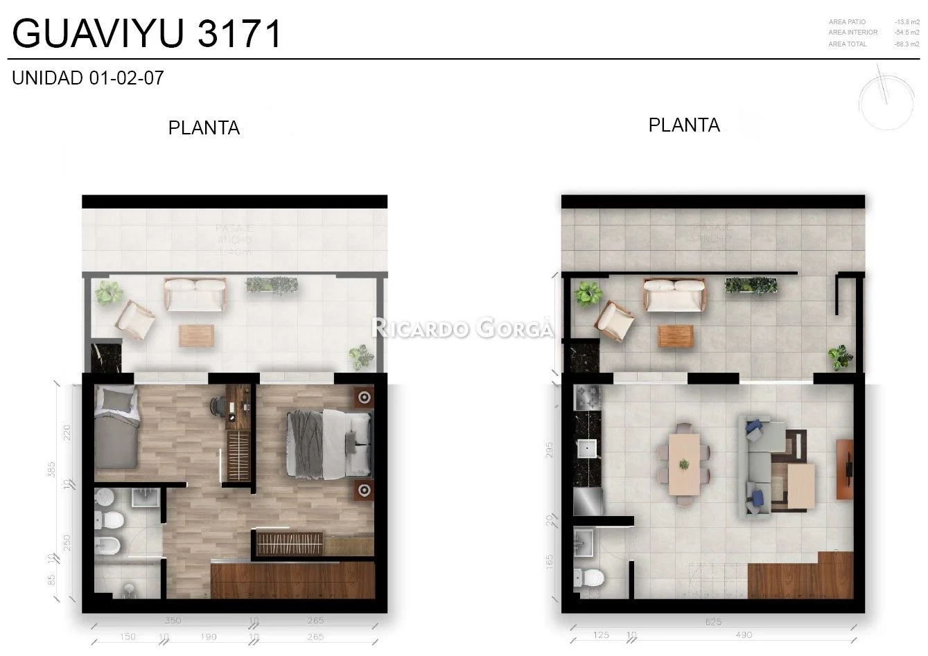 Cubierto: 55m2 / Descubierto: 14m2 / Total: 69m2